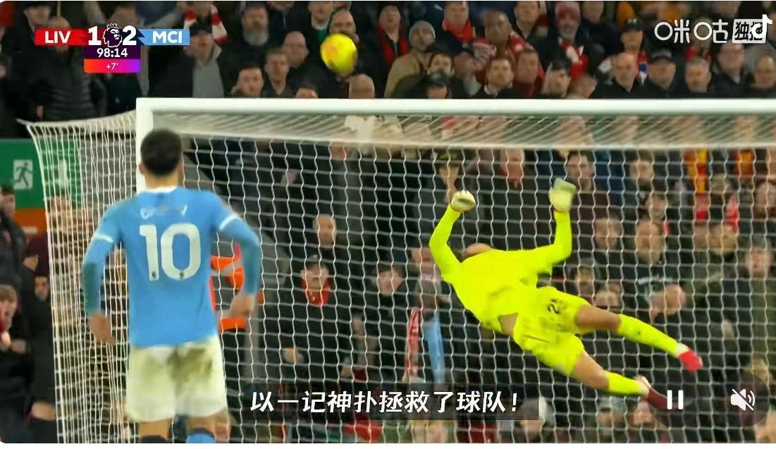 道高一尺魔高一丈,多纳鲁马,镇不住索博,还拿捏不了麦卡! 英超利物浦对阵曼城可谓精彩纷呈! 在比赛的第90+8分钟,也就是比赛的最后时刻,利物浦1-2落后的情况下,利物浦中场大将麦卡利斯特中路得球,在曼城大禁区前沿打出了一脚势大力沉、角度刁钻的远射,从现场转播角度看,这球必进无疑! 然而,就在这千钧一发之际,曼城门神,多纳鲁马不可思议的一跃而起,硬是将这个世界波扑了出去! 不只是我看傻眼了,现场的瓜迪奥拉也被惊讶得手舞足蹈,兴奋不已! 不得不说,多纳鲁马,太神了!