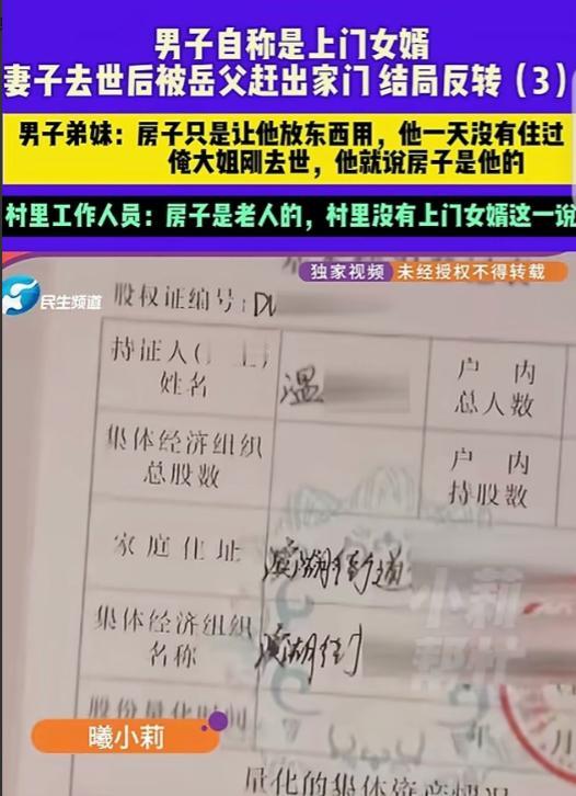 “这吃相太难看了!”河南平顶山,一42岁男子是上门女婿,妻子乳腺癌突然去世,上午办完葬礼,下午岳父就把他和12岁儿子扫地出门,把房子门焊死了。男子崩溃了,哭的鼻涕一把泪一把,说白为这个家付出17年,房子是他的,凭啥把他赶走?岳父:我有儿子,咋可能招上门女婿?你把上门女婿的文件拿出来。岳父一番话,让事态大反转,真相惊呆众人。 咋一听这事儿,任谁都得替这男的抱不平,刚送走患乳腺癌的妻子,连悲伤的劲儿都没缓过来,上午刚忙完葬礼,下午就被岳父这么绝情地对待,换谁能扛得住? 42岁的他,带着12岁的儿子,站在被焊死的铁门前,整个人都垮了,哭得直不起腰,鼻涕眼泪混在一起,嘴里反复念叨着自己为这个家熬了17年,没功劳也有苦劳,这套房子明明该是他的,岳父凭什么说赶人就赶人,还把门锁死断了他所有退路。 周围围观的人一开始也都议论纷纷,大多是指责岳父太绝情,刚失去女儿,就容不下女婿和外孙,太不近人情,就算有天大的矛盾,也不该在葬礼当天就做得这么绝。 可就在大家都一边倒同情男子的时候,岳父的一番话,直接让所有议论都停了下来,事态彻底反转,在场的人都惊呆了。 岳父面对众人的议论和男子的哭喊,语气很坚决,说自己有亲生儿子,按照老家的规矩,根本不可能招上门女婿,还当场让男子拿出当初约定好的上门女婿相关文件,可男子支支吾吾,根本拿不出来。 这一下,大家才意识到,这事儿可能不像男子说的那样,背后或许还有隐情。 后来大家才慢慢摸清了情况,男子口中说的自己是上门女婿、为家里付出17年、房子归他,其实都没有实打实的依据。 有人去看了那套被焊死的房子,发现里面根本不像是长期有人居住的样子,没有通水通电,连个像样的厕所都没有,更别说长期住着他一家三口,还有身患乳腺癌的妻子了,这显然不合常理。 周围的村民也都说,平时根本不怎么见到这个男子,更没听说他为这套房子出过钱、出过力,也没人知道他所谓的“上门女婿”身份。 就连村委会后来也出具了证明,明确说这套房子的产权是岳父的,男子在村里也没有自己的宅基地,这下才算把事情的真相彻底摆清楚了。 其实男子也不是故意要撒谎争房子,他从小就是孤儿,没有亲人,如今妻子走了,就剩下他和12岁的儿子,他是真的怕了,怕自己和儿子无家可归,怕儿子受委屈,才急着抓住这套房子这根“救命稻草”,情急之下才说出那些不符合事实的话,还多次报警、甚至想撬锁,把家里的矛盾闹大了。 好在岳父一家也没有赶尽杀绝,知道他的难处后,给了他两个月的时间收拾屋里的东西,小舅子也承诺,会好好保障外甥在村里的合法权益,不会让孩子受委屈。 一场因为房子和身份引发的闹剧,最后也算有了一个相对温和的结局。 大家对此怎么看?欢迎评论区留下您的观点!