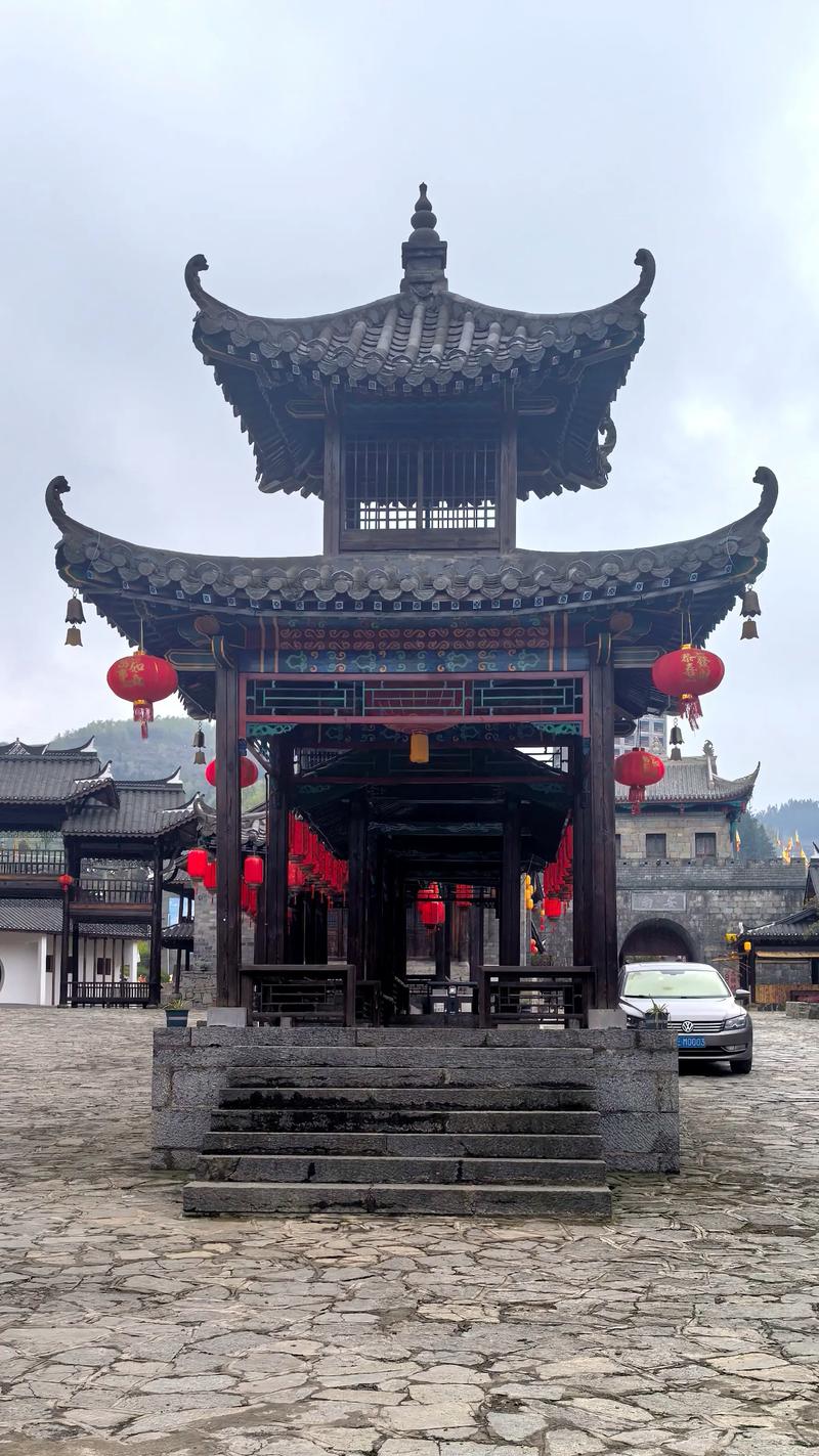 2️⃣.阿妹戚托小镇,建筑融合彝族“牛头”“虎头”图腾元素。景色超美
