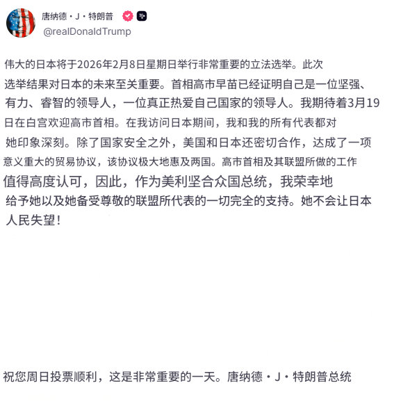特朗普是不是又删帖子了?把这个干涉日本内政的帖子删了,找了一圈没找到,而且我记得早上高市早苗还特意感谢了这个帖子,现在也没了热点观点日本众议院选举结果