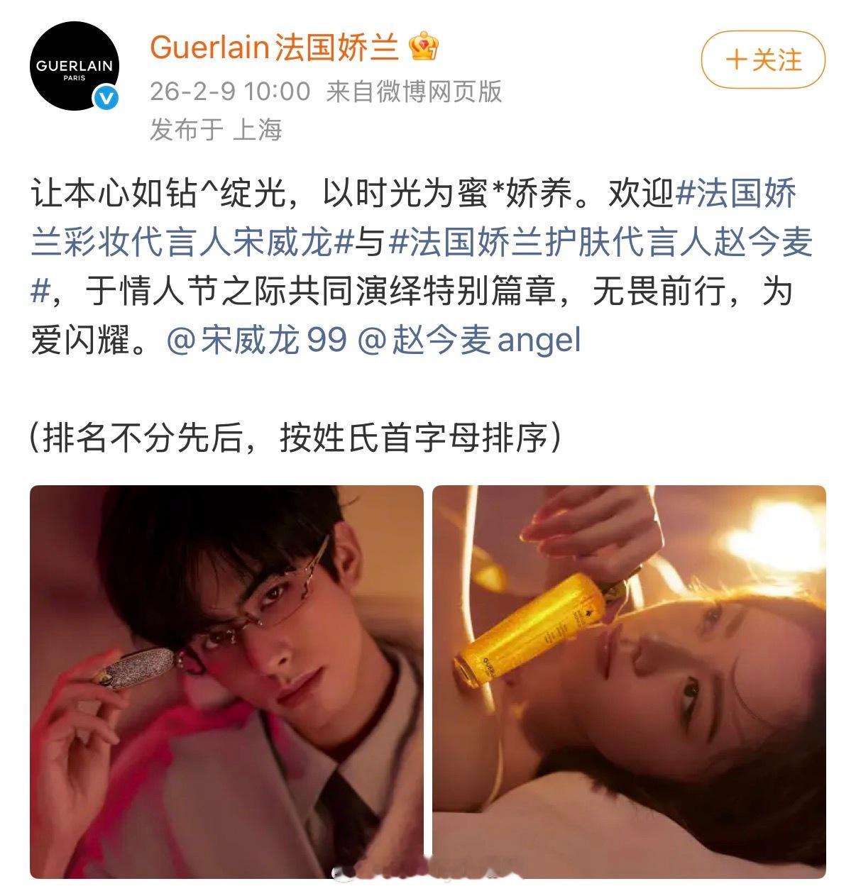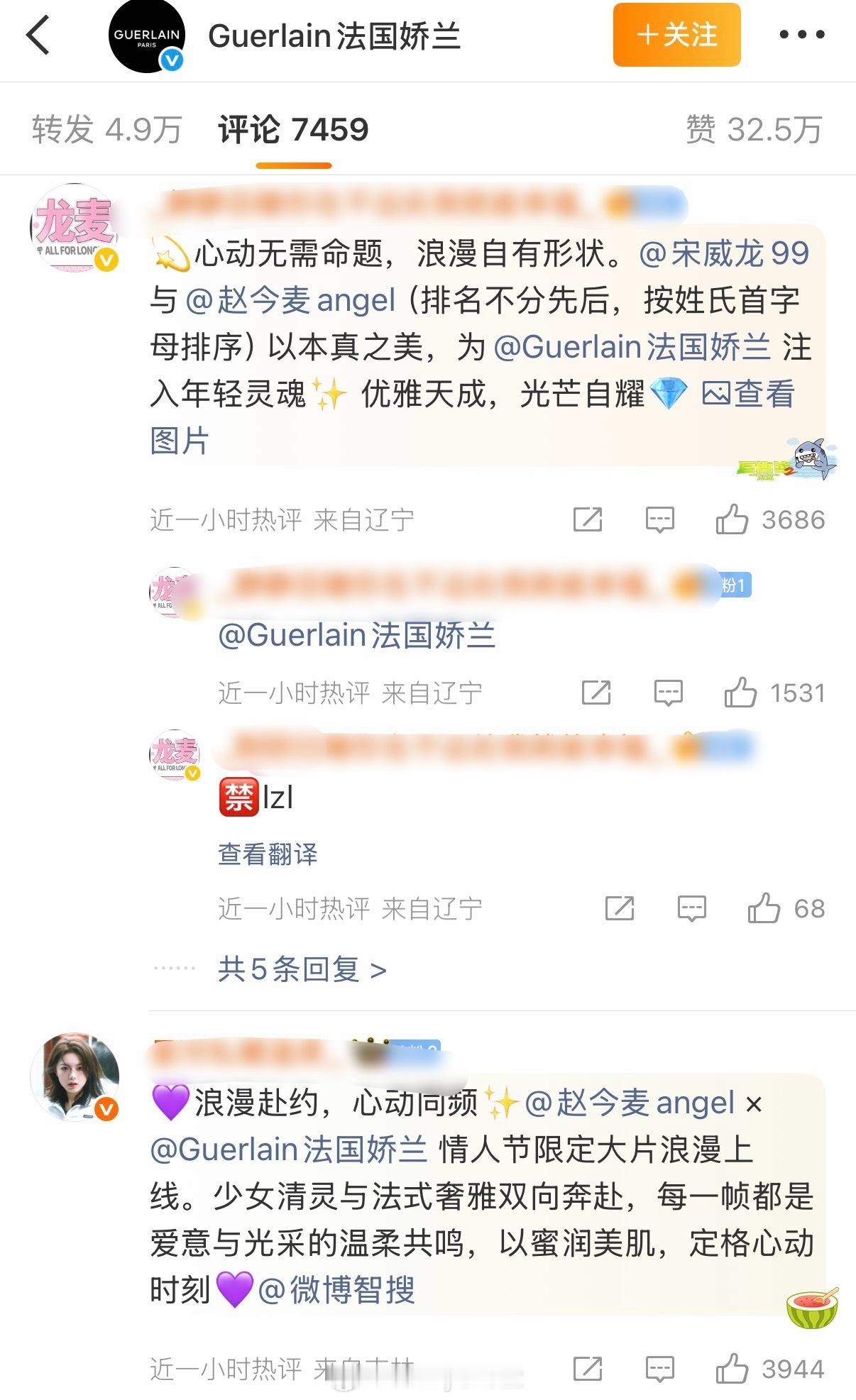 龙麦娇兰娇兰发布宋威龙、赵今麦情人节海报预告,评论区的唯粉开始发力,当这对的CP