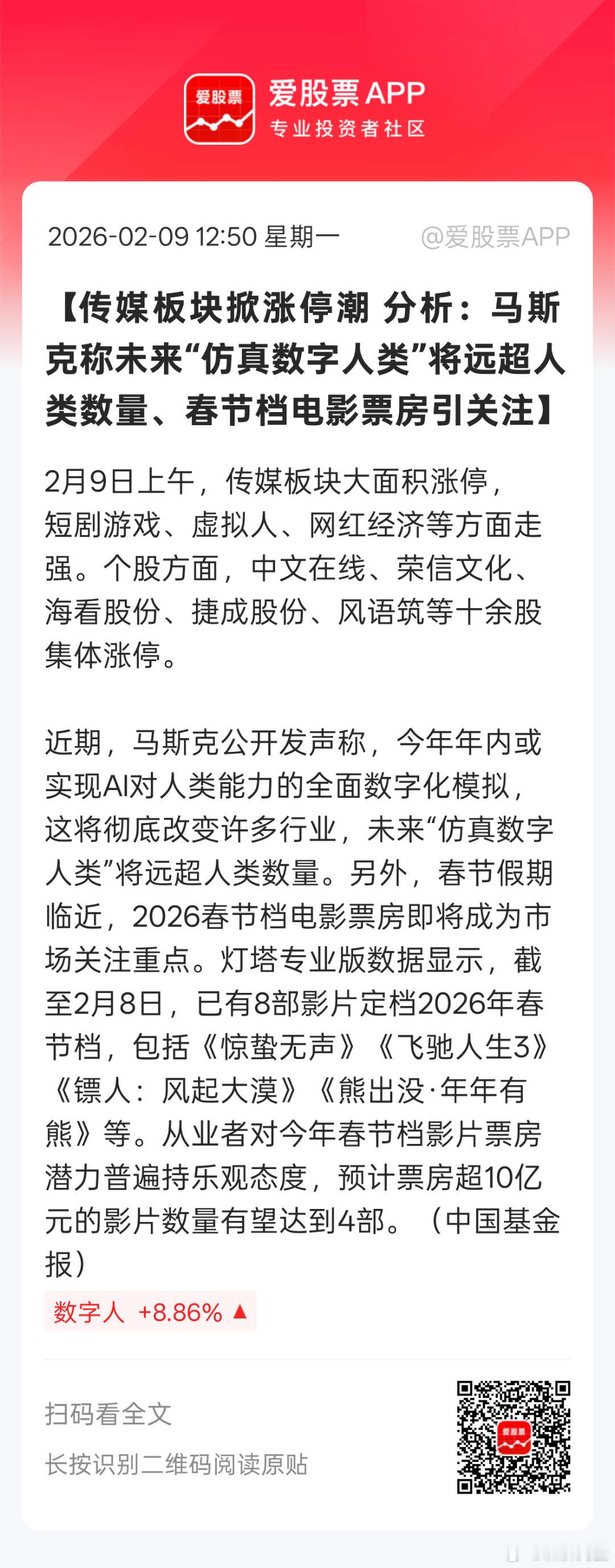 其实是字节的seedance2.0发布,生成效果超预期,市场预期推动AI短剧,AI漫剧加速发展,对整个产业链利好,包括数字版权企业,AI漫剧企业等