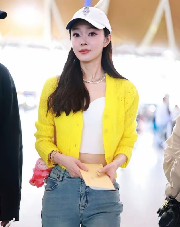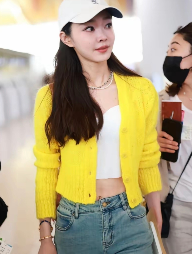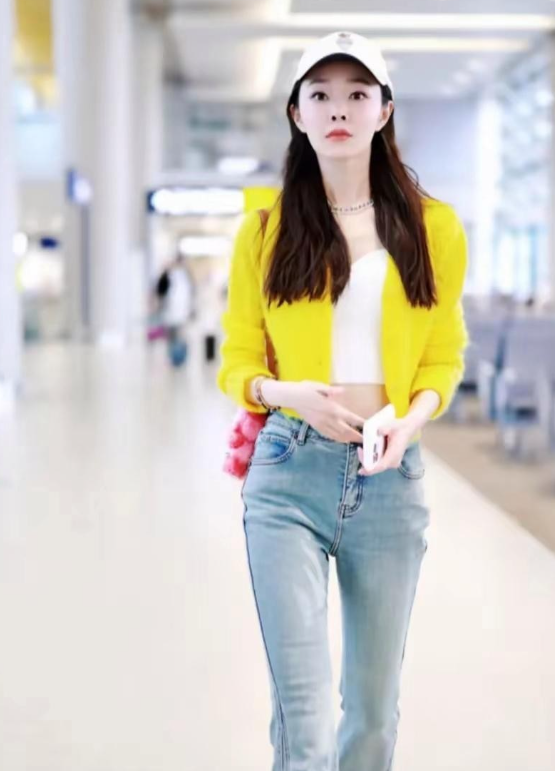 宋轶穿黄色毛衣,搭配牛仔裤,温柔显活力