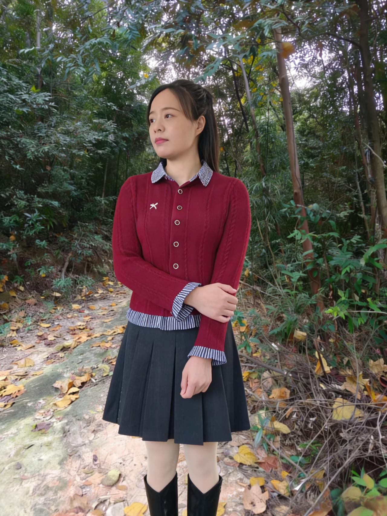 红衣一袭立秋光,裙袂随风瓜果香。 笑指前村烟树里,有人篱下摘新黄。