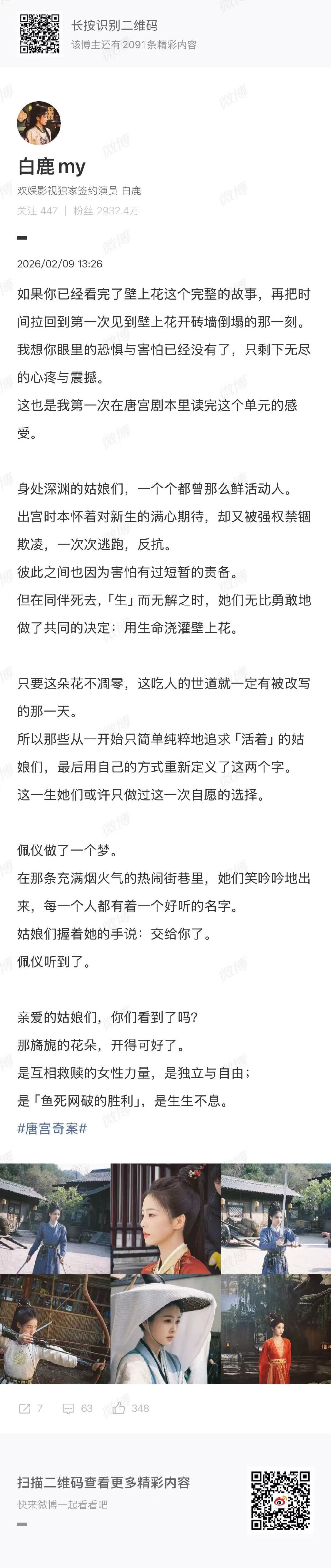 白鹿亲爱的姑娘们你们看到了吗白鹿聊壁上花单元的感受不愧是鹿最喜欢的一个单元