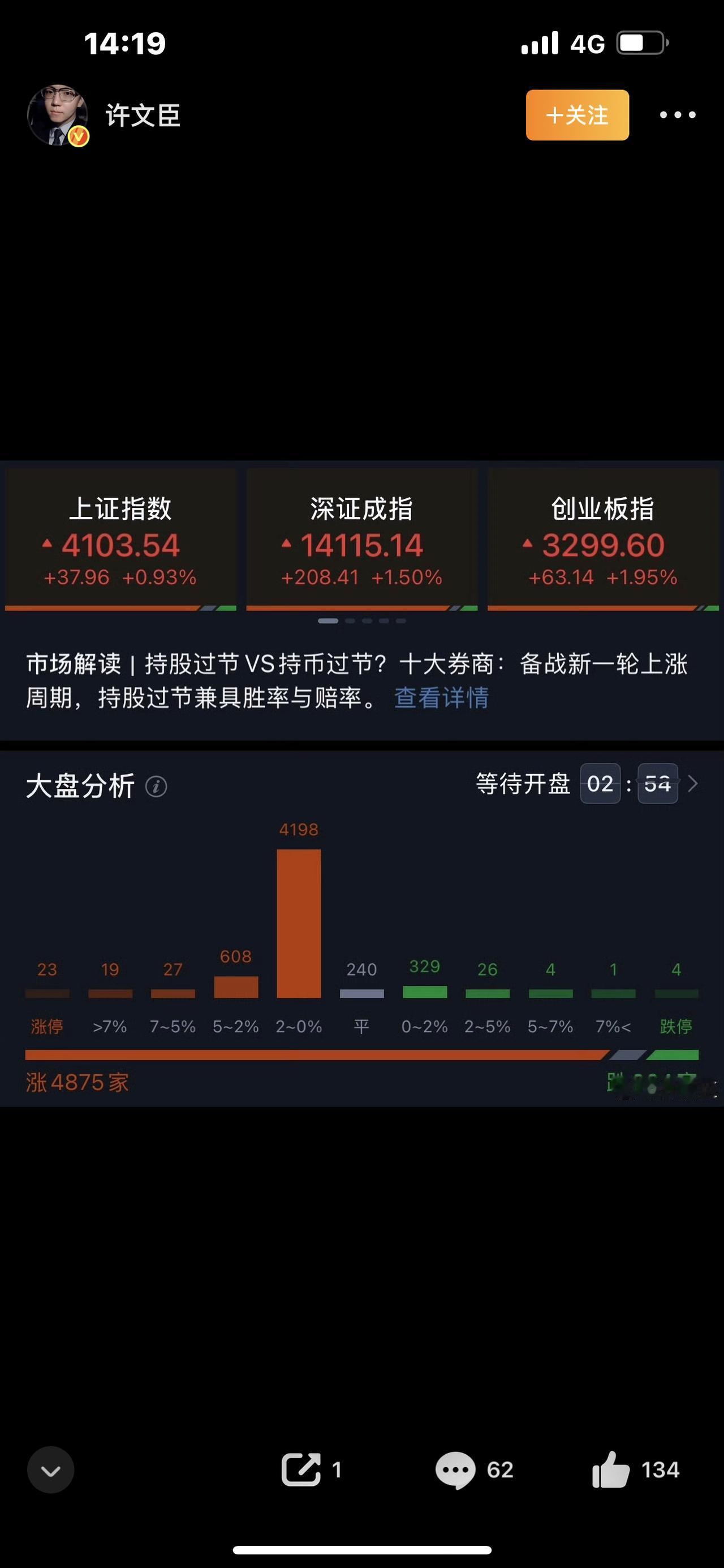 A股节前大震荡!4200股飘红却藏陷阱,红包行情到底怎么抓? 今早打开炒股软件的股民都懵了!A股高开直冲,超4200只股票飘红,北向资金狂买121亿,朋友圈全是晒盈利的,不少人直呼“节前红包行情来了”,赶紧加仓进场,可谁料午后冲高回落,有人刚追高就被套,这波行情到底是馅饼还是陷阱? 最近的A股简直像坐过山车,2月初还大跌,上证指数一度跌超2%,深证成指跌近3%,不少股民把年前的利润吐了回去,直呼“想清仓过年”;结果才几天,电力设备、食品饮料、影视院线板块轮番大涨,横店影视5度涨停,凯龙高科直接20cm封板,抄底的人短短几天就吃到大肉,连新手都敢进场试试水。 眼看大家都在抢节前红包,这里藏着个关键转折点,千万别踩坑!很多人看到4200股飘红就以为是全面普涨,闭眼追热点,却忽略了现在的A股是“赚了指数不赚钱”的结构分化行情。看似涨势喜人,实则纯题材股、高位股悄悄回调,大资金根本不是全面拉升,而是忙着“弃高就低”——一边卖出没有业绩支撑的炒作股,一边抄底政策利好、现金流扎实的消费、电力板块,北向资金121亿的流入,也只盯着核心龙头股,普通人盲目跟风,很可能买在高点套牢过年。 更关键的是,节前的A股藏着3个绕不开的现实:9天春节休市,外围美股波动、消息面都是未知数,大资金宁愿落袋为安也不会重仓博弈;成交量始终缩量,没有资金支撑的普涨根本走不远;所谓的红包行情,从来不是所有板块都涨,而是消费、大基建这类有确定性的板块轮动上涨,追涨杀跌只会来回挨揍。还有人想着满仓博一把大的,殊不知现在最稳妥的是仓位管理,半仓布局、留足现金,远比赌徒式操作靠谱。 其实说到底,炒股从来不是比谁胆子大,而是比谁看得清、守得住。老股民都懂,节前的小涨小跌都是浮云,真正的机会在年后,与其为了一点红包行情冒大风险,不如稳扎稳打,守住本金安心过年。A股的魅力从来不是一夜暴富,而是长期的价值陪伴,那些能在市场里赚到钱的人,从来不是追热点的聪明人,而是耐得住寂寞、守得住节奏的普通人。 今年节前你是满仓、半仓还是清仓了?手里拿的是消费股还是科技股?评论区聊聊你的操作,咱们一起蹲个年后的春季行情!