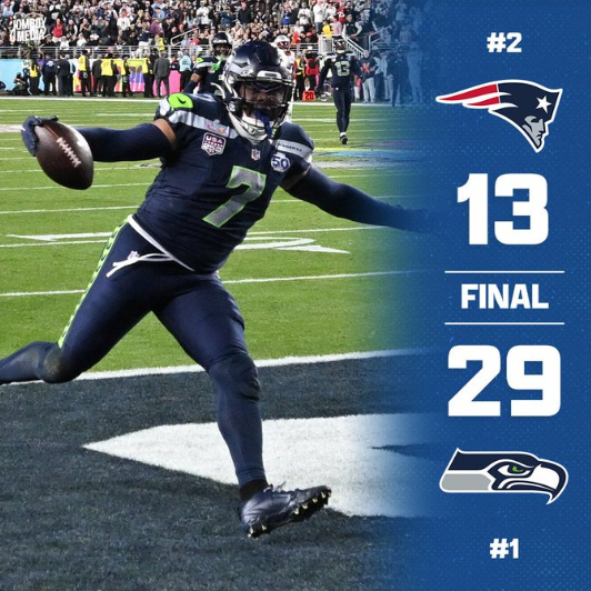 恭喜海鹰夺冠!时隔11年复仇爱国者夺得第六十届超级碗冠军 在前三节比赛中双方都未实现达阵,海鹰靠着任意球射门取得了12-0的领先,第四节比赛一开始海鹰达诺德连线近端锋巴纳,拿下本场比赛首个达阵,19-0领先爱国者。爱国者虽完成一次达阵将比分扳至19-7,然而在比赛还有四分半结束时,海鹰线卫恩乌苏捡起梅耶被擒杀的掉球,直入端区拿下达阵!海鹰29-7爱国者,奠定胜局。比赛还剩2分半时,梅耶传给史蒂文森,后者极限接球完成达阵,虽然回追比分但无法改变结果,比赛结束时,比分定格在29-13,海鹰取得胜利。 十一年前超级碗面对爱国者1码没达阵的遗憾在今日弥补,恭喜海鹰。