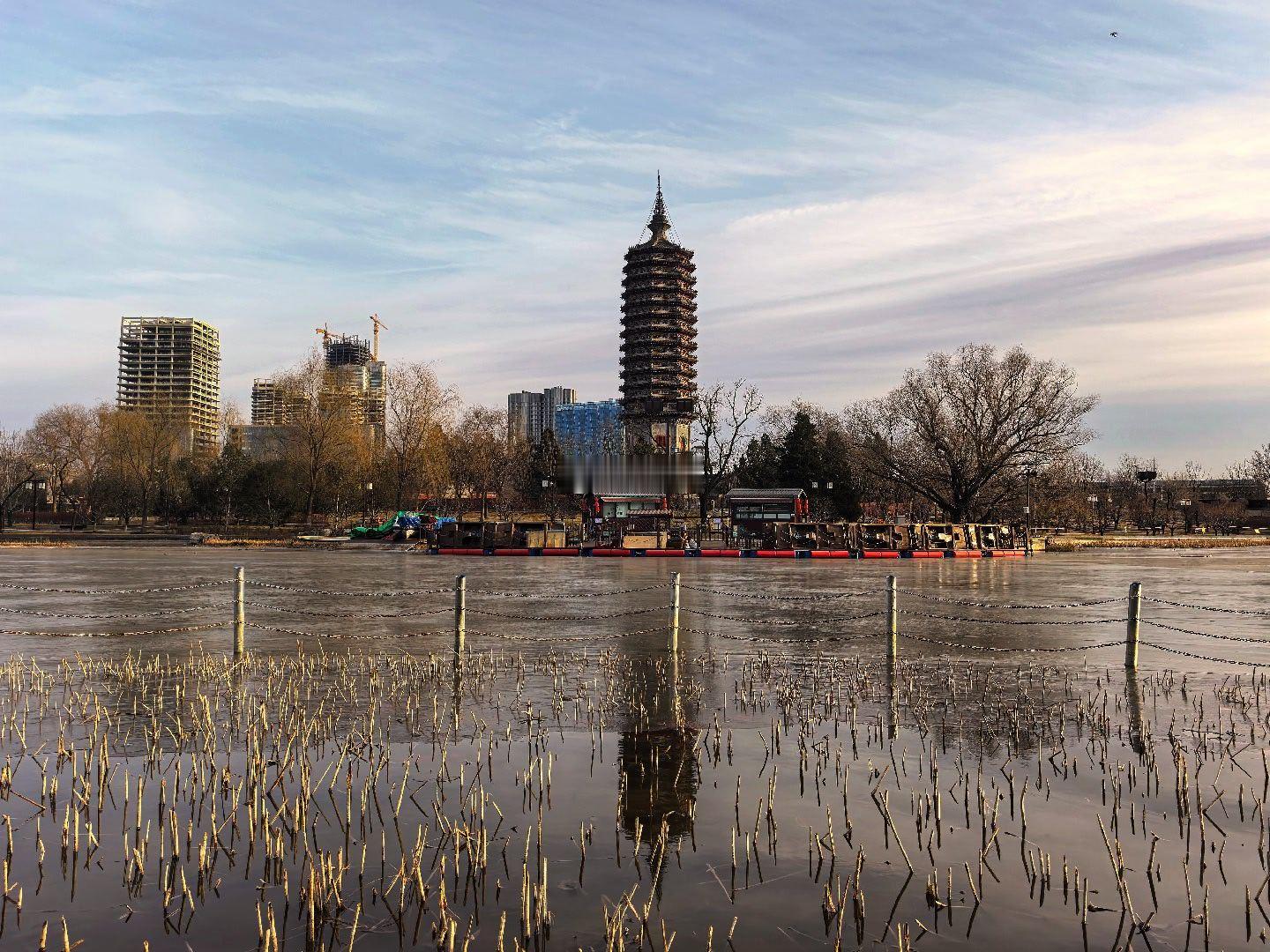 初春的玉渊潭之晨,阳光和煦,春水无声,只有野鸭在冰面上悠闲地哂着太阳打着盹,鸳鸯
