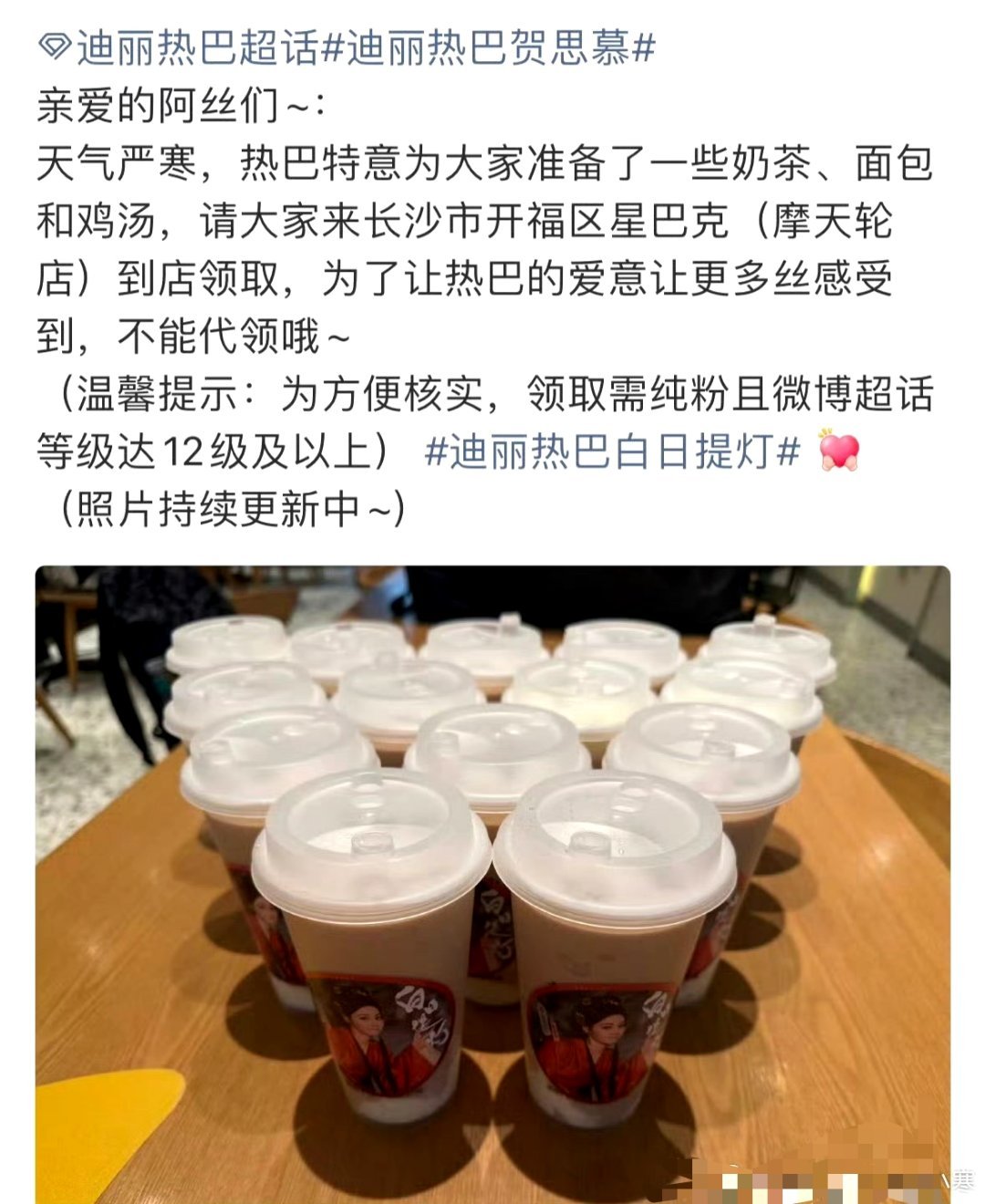 迪丽热巴给粉丝点了奶茶面包鸡汤有门槛呢没有12级超话不配吃把粉丝还分成三六