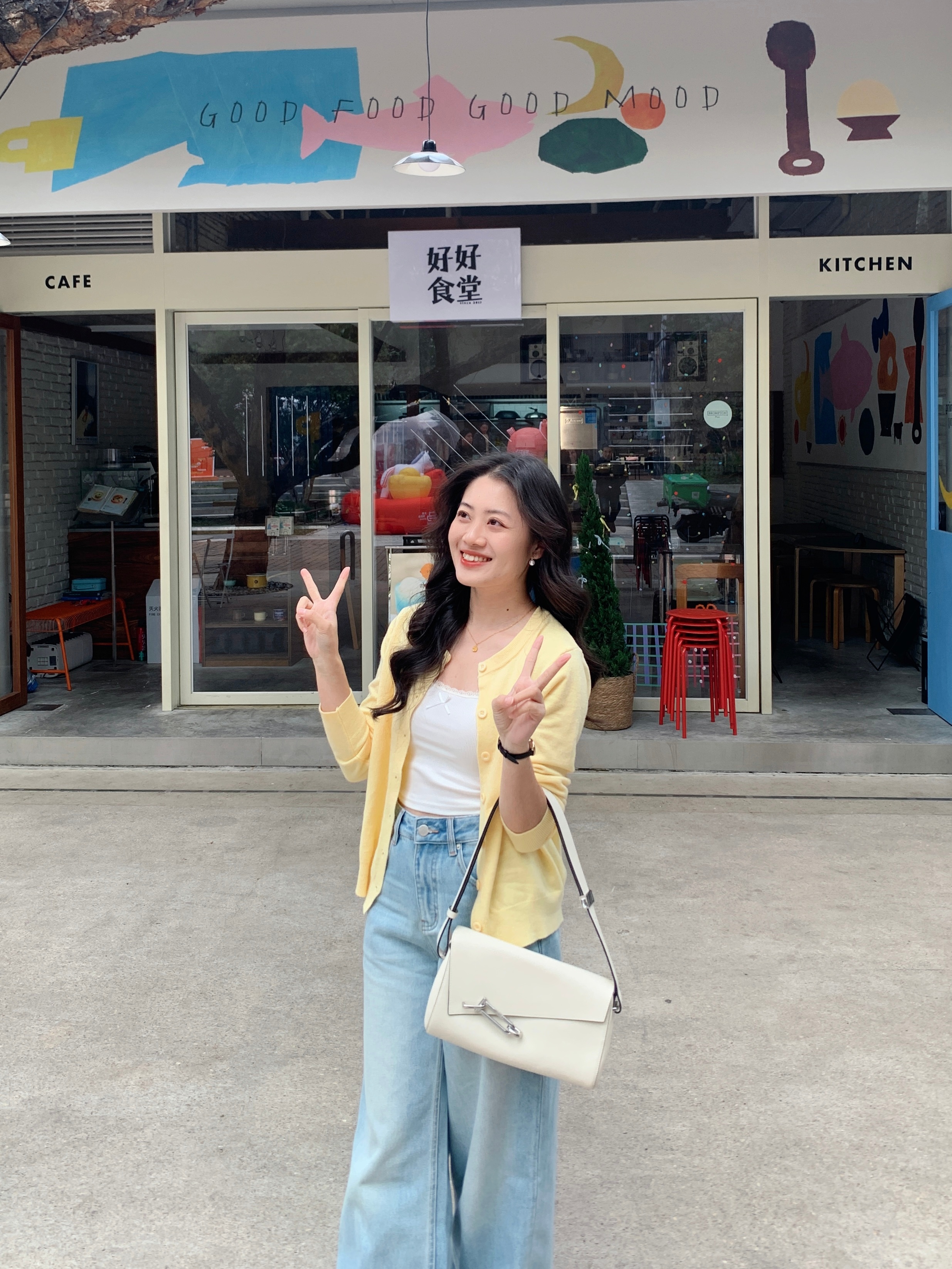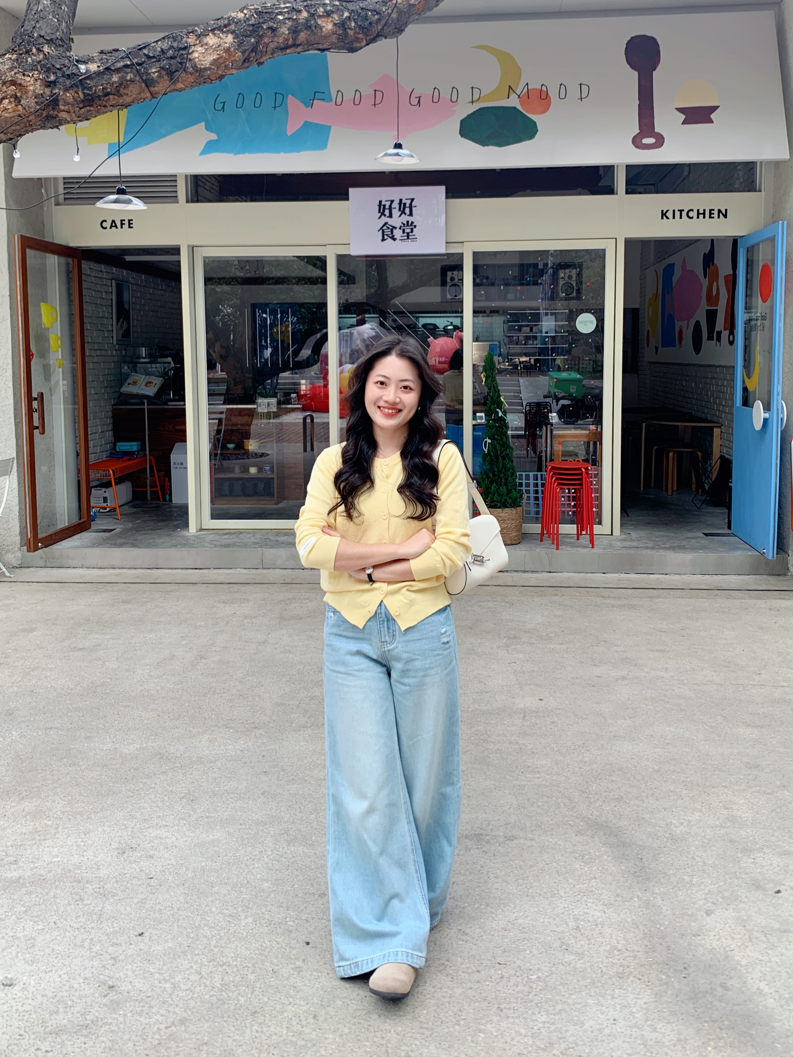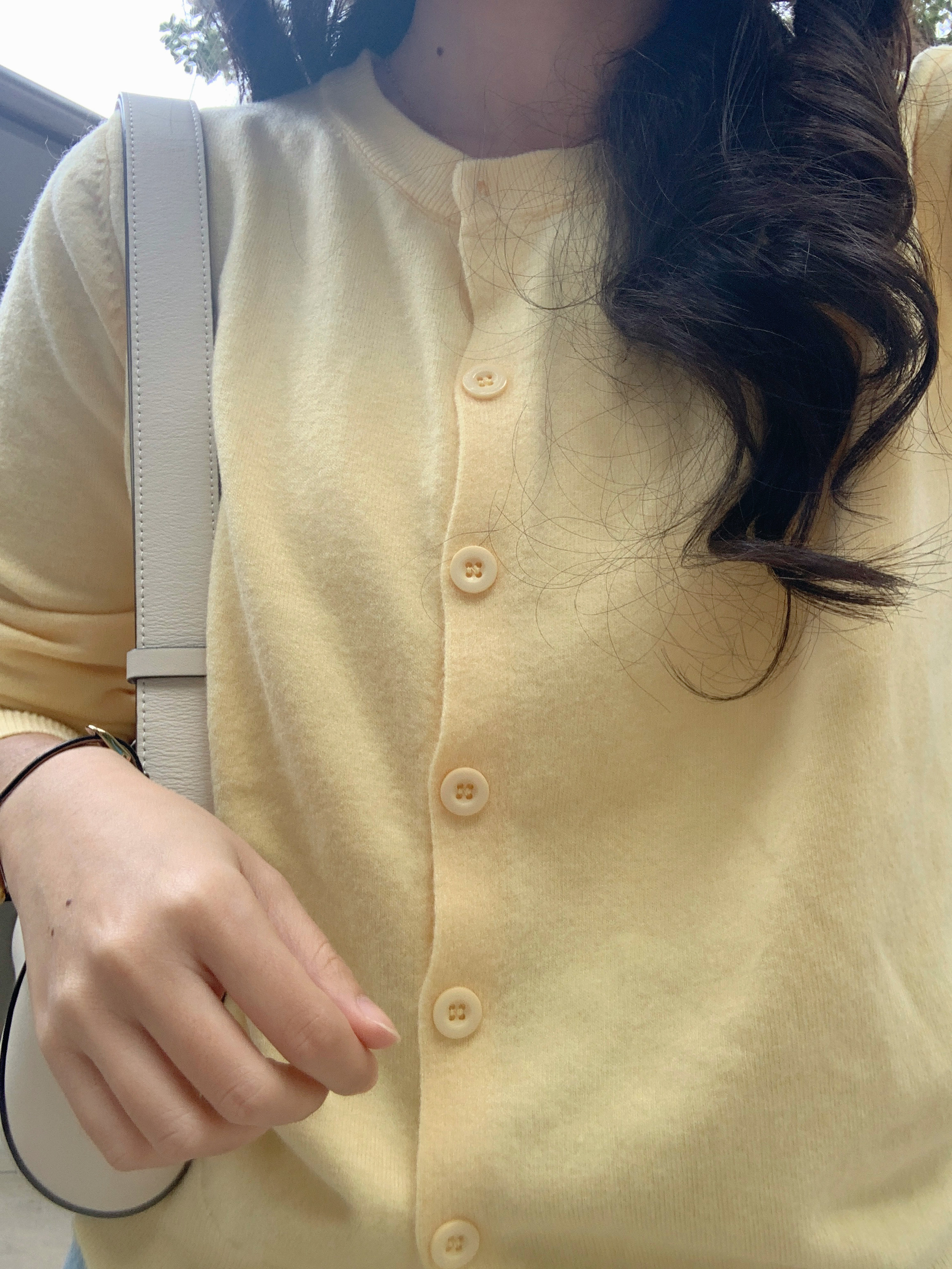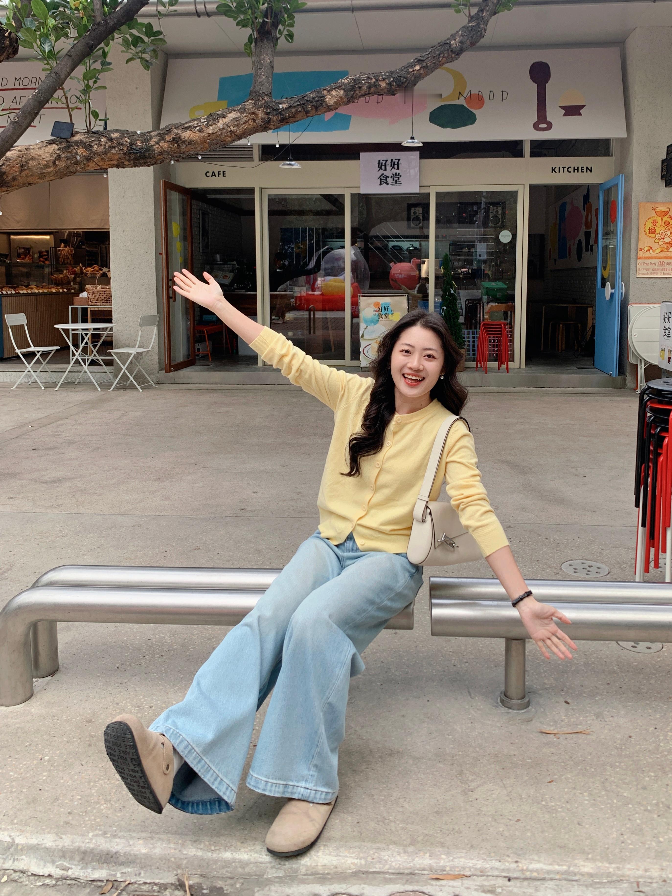 忍不住分享一下这个39的开衫!!颜色是很正的奶黄色~质量手感都很软糯!!穿搭分享