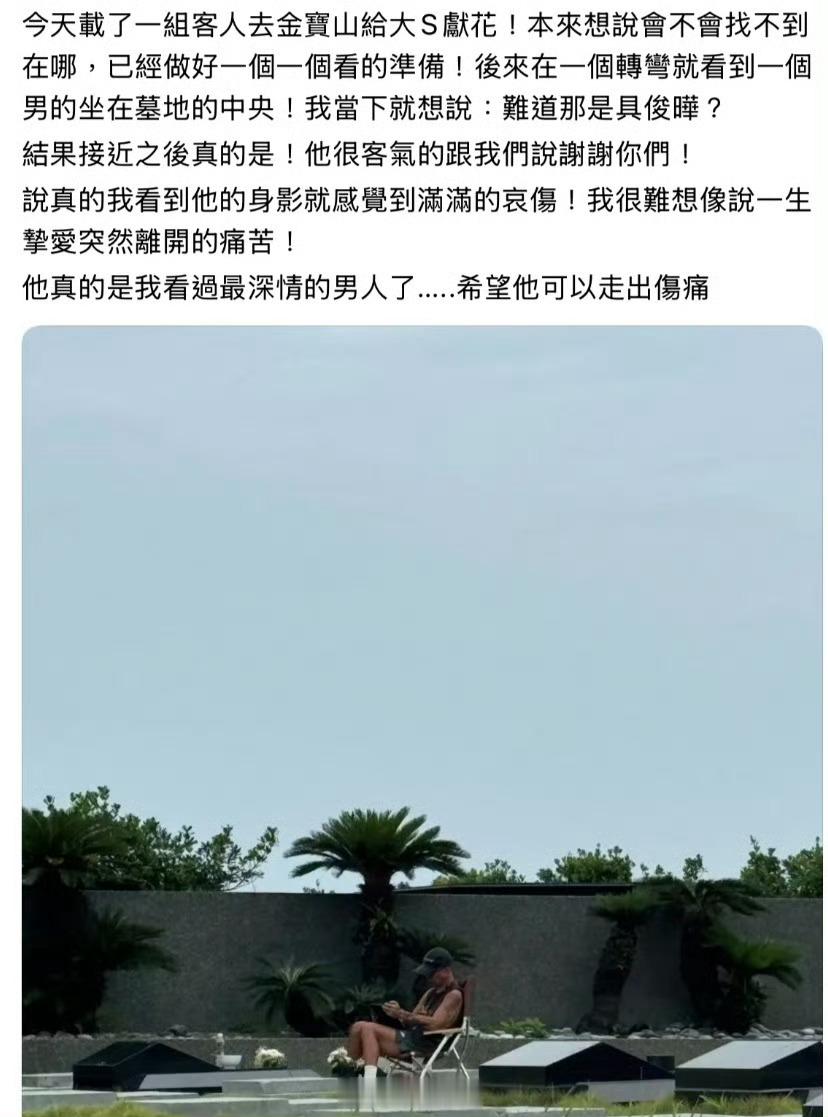 有网友偶遇具俊晔结婚纪念日仍在墓园陪伴大S,之前具俊晔也多次被拍到去墓园陪伴大S,这么深情的男人不多了吧