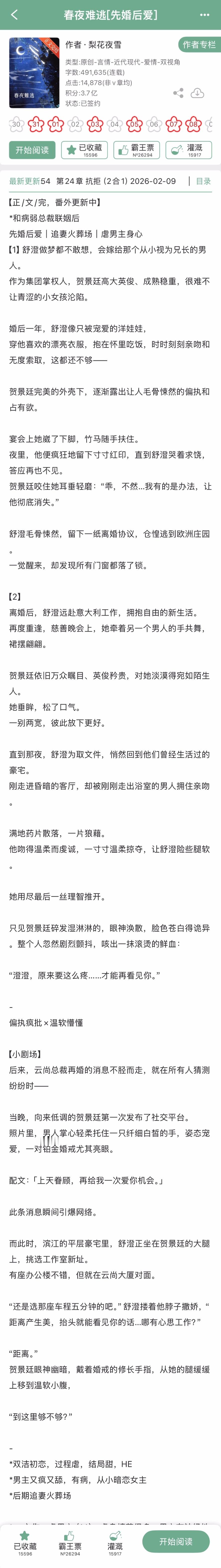 梨花夜雪的《春夜难逃[先婚后爱]》完结啦!现言➕先婚后爱➕追妻火葬场,偏执疯批x温软懵懂