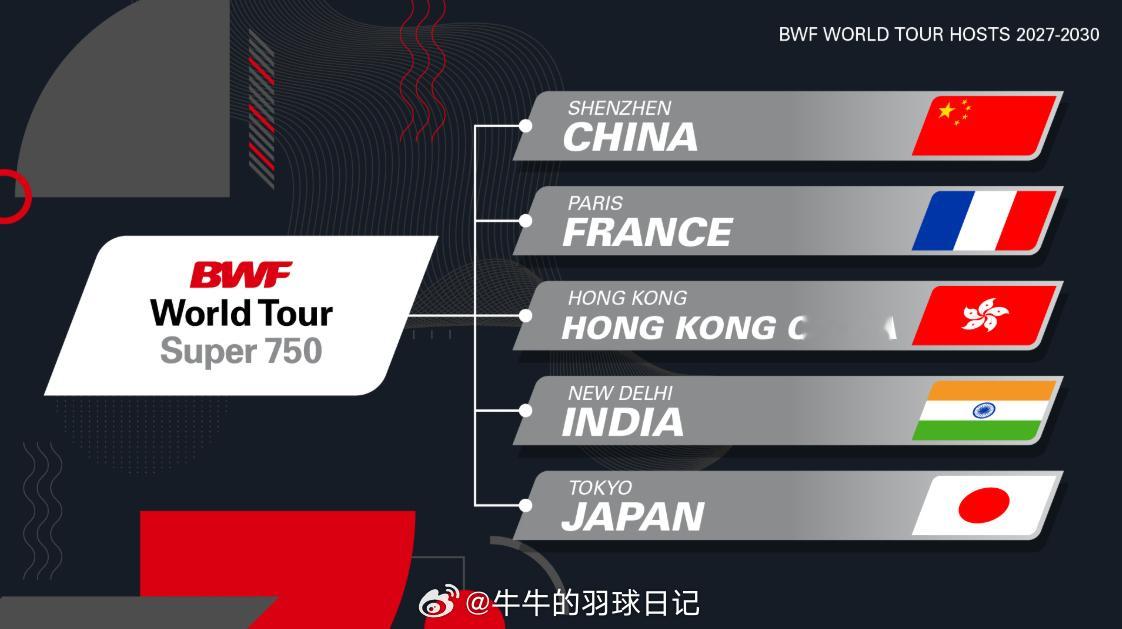 2027-2030超级750赛中国大师赛法国公开赛中国香港公开赛印度公开赛日本公