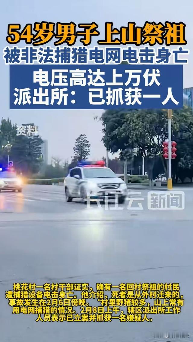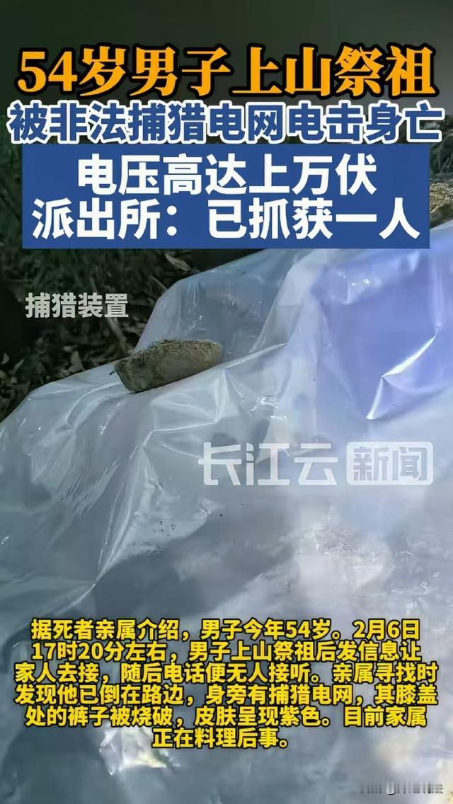 重庆,54岁男子上山祭祖,结束后给家里人打电话让来接自己,家人到了后给他打电话打不通,上山寻找发现男子被非法捕猎电网击中,人已经没了!那个电网,电压竟然高达上万伏! 据长江云新闻、红星新闻等报道,56岁的王某家住巫山县抱龙镇桃花村,他上有父母下有妻儿,是家里的顶梁柱。 2月6日,快年底了,王某上山去祭祖。 王某家的祖坟在大山里面,距离非常远,上一次坟来回要好几个小时。王某去的时候坐的班车,祭完祖回家时,王某走小路下山。 傍晚5点20分左右,王某给家里人发信息,让他们去山下接自己。 过了一会,王某的家属到了山下,却迟迟没有看到王某下山,给他打电话,也一直没人接。家属等了一会,越等心里越不安。 当地山上没有猛兽,家属猜测王某可能发生了不测,但也仅仅只是猜他是不是下山的时候脚滑摔坏了腿,于是就到山上去找他。 可让家属没想到是,王某并没有摔跤,而是被偷猎者“捕获”了! 王某并不难找,家属看到他的时候,他正在路边躺着,但是人已经毫无生命迹象了。 王某确实是发生了意外,但是这个意外却是人为造成的。 原来,随着生态的恢复,当地出现了很多类似于野猪这样的野生动物,有人就偷偷在山上架设高压电网捕猎。 王某不知情,在小路上行走时,不慎碰到了电网,当时就被电倒了。 家属找到王某时,他裤子的膝盖处被烧了一个大洞,皮肤青紫。 家属在旁边找到了一块塑料布,塑料布下面放着一个装有高压电瓶的蓝色盒子,经检测电瓶电压高达上万伏。 令人心惊的是,高压电网就架设在一米宽的小路上,布置的非常隐蔽,旁边也没有个提醒标志。 王某的家属立即报了警,又叫了村里人过来帮忙。 第二天,民警将犯罪嫌疑人黄某抓获。 据了解,黄某40岁,此前曾有过犯罪前科。 黄某被抓后,家属找到王某家里,提出赔偿王某家里5万元丧葬费,可事后却再也没有了动静。 目前,黄某已经被依法刑事拘留。 黄某非法捕猎,致使王某意外离世,黄某的行为违反了什么法律?会受到什么处罚? 1、黄某构成非法狩猎罪。 《刑法》第三百四十一条规定,违反狩猎法规,在禁猎区、禁猎期或者使用禁用的工具、方法进行狩猎,破坏野生动物资源,情节严重的,处三年以下有期徒刑、拘役、管制或者罚金。 黄某为了捕猎野生动物,在山上私自架设上万伏高压电网。私自架设电网狩猎严重破坏了野生动物资源,属于使用禁用的工具和方法进行狩猎。 2、黄某涉嫌过失致人死亡罪。 《刑法》第二百三十三条规定,过失致人死亡的,处三年以上七年以下有期徒刑;情节较轻的,处三年以下有期徒刑。 在山上私自架设高压电网,存在极大的安全风险,可能会对他人的生命安全造成威胁,黄某作为一个成年人,对这一情况理应知晓,却没有设置任何提醒标志,最终导致王某在不知情的情况下触碰到电网离世。 黄某存在疏忽大意的过失,其行为与王某的离世存在直接因果关系,构成过失致人死 亡罪。 在司法实践中,黄某的行为同时触犯了非法狩猎罪和过失致人死 亡罪。对于这种情况,通常会按照想象竞合犯的原则,从一重罪处罚。 过失致人死 亡罪的法定刑相对较重,所以一般会以过失致人死 亡罪来追究黄某的刑事责任。 同时,黄某还需要承担相应的民事赔偿责任。 王某家属有权要求黄某赔偿因王某离世造成的各项损失,包括丧葬费、死亡赔偿金、被扶养人生活费等费用。