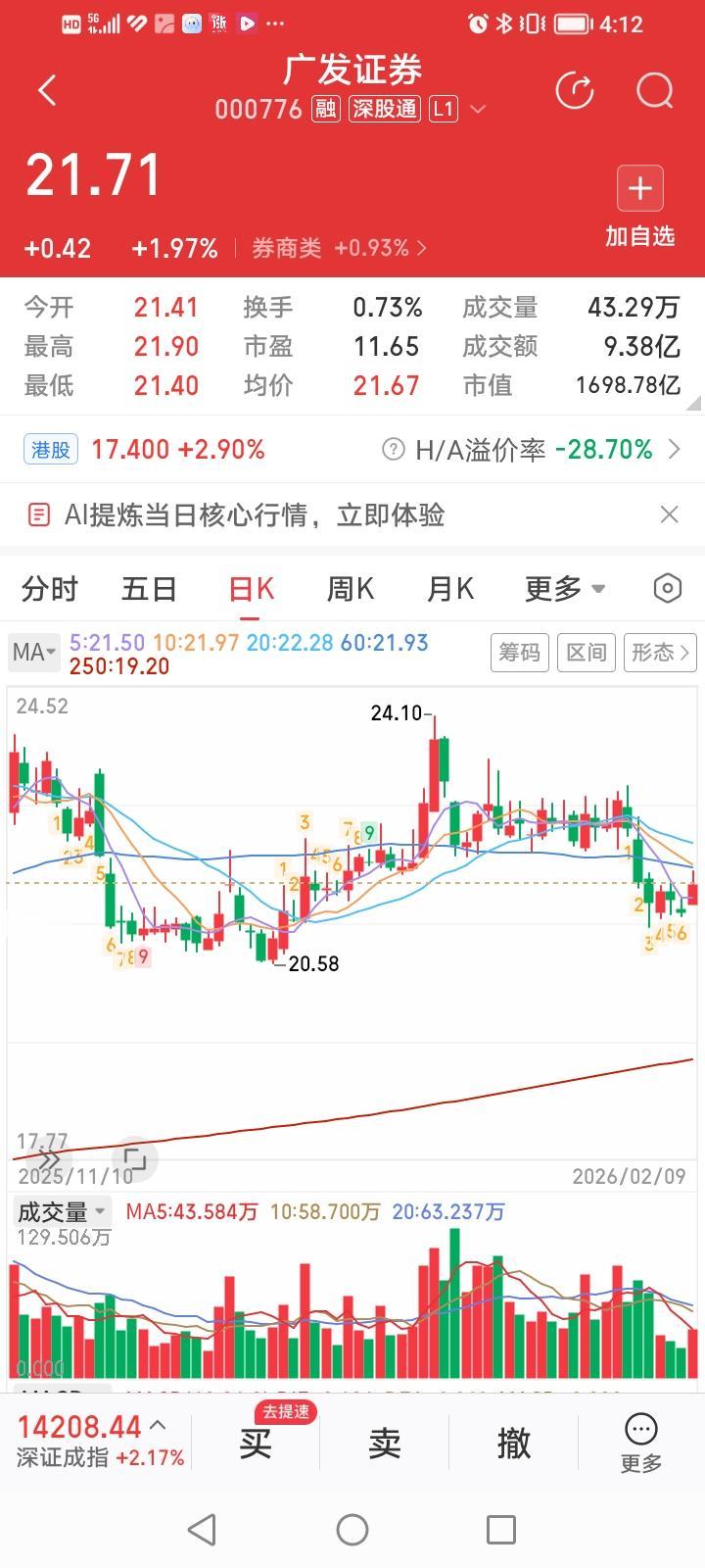 什么情况?广发证券A、H股双双联袂上涨,而且H股比A股涨的还好。广发证券A收盘上