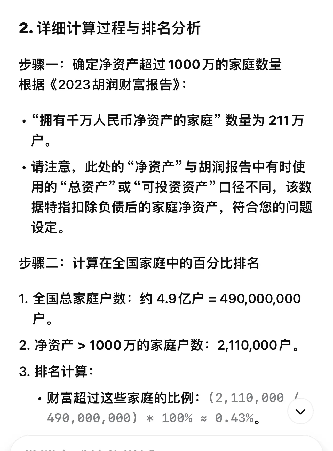 deepseek:只要有1000万元的净资产,就已经比99.6%的中国家庭更富