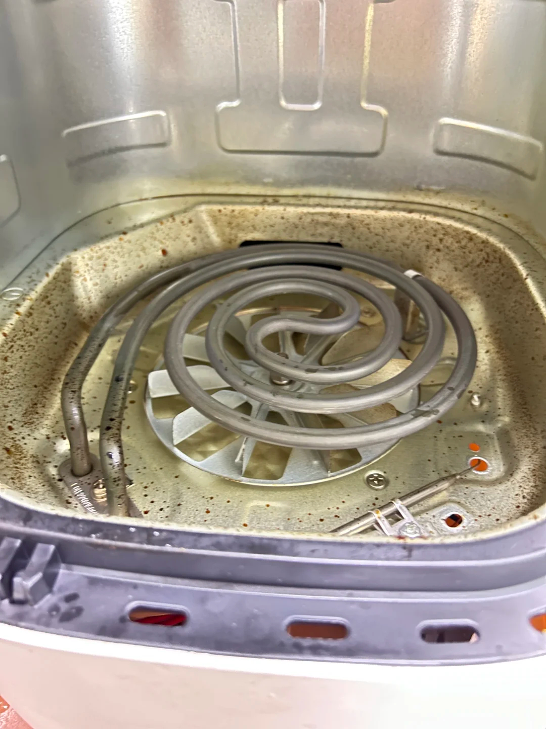 空气炸锅半年清洗一次 空气炸锅这玩意确实是不太好洗 洗盘子的部分还好。。加热圈的部分都是死角用时一时爽,清洗的时候就嗷嗷叫了