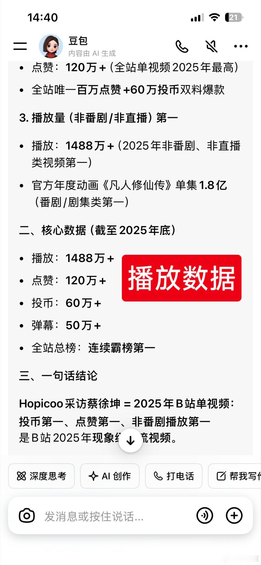 2026年,蔡徐坤字母站采访数据一览——点赞第一,投币第一,播放量现象级。