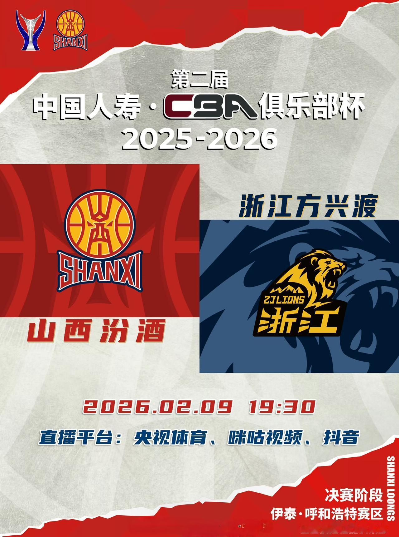 cba俱乐部杯半决赛山西汾酒男篮vs广厦2.11日19:30🎙 汾酒男篮💪