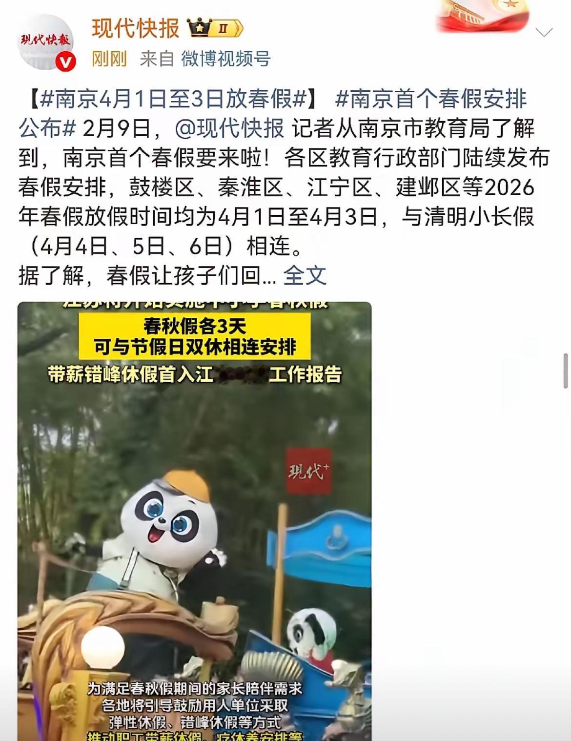 2月9日,南京市教育局官宣,首个春假安排为4月1日-3日,更让人惊喜的是,衔接清
