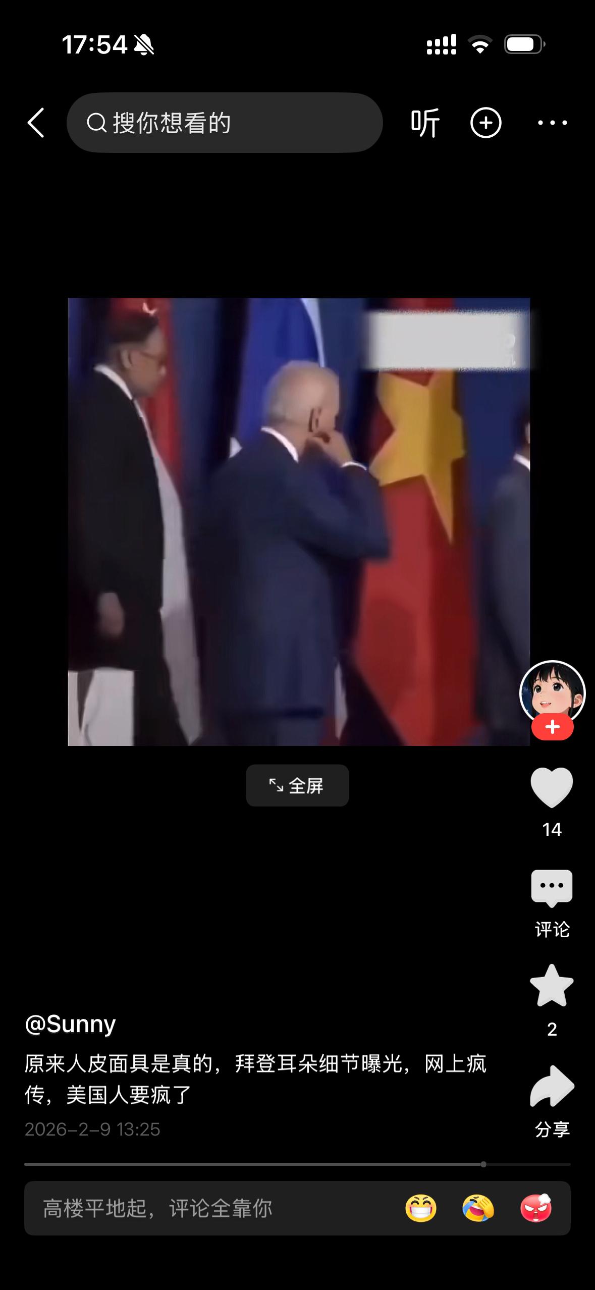 天呐,美国总统拜登竟然是戴着人皮面具,那么这个人到底是谁呀? 这个说法是一个已经被多次辟谣的网络阴谋论,完全没有事实依据。 谣言解析 1. 视频内容的真相 ◦ 这段视频里,拜登的动作只是在整理耳麦或者挠耳朵。所谓“人皮面具”的效果,实际上是视频经过了恶意裁剪、放大和变速处理,再加上灯光、角度和皮肤自然褶皱造成的视觉错觉。 ◦ 类似的片段在国外社交平台被反复传播,已经被包括PolitiFact、Newsweek在内的多家权威媒体和事实核查机构判定为“虚假信息”。 2. “人皮面具”阴谋论的背景 ◦ 这一说法最早源于美国极右翼和阴谋论团体,目的是质疑拜登的健康状况和执政合法性。 ◦ 类似的谣言还有“拜登有替身”“拜登被AI合成”等,都没有任何可靠证据支撑。 3. 科学与逻辑层面的反驳 ◦ 要制作一个能以假乱真、长时间佩戴且能应对各种公开场合的“人皮面具”,在技术上几乎不可能实现,更不可能在全球媒体的镜头下长期不暴露破绽。 ◦ 白宫和拜登的医疗团队多次公开了他的健康报告,证明他的身体状况符合总统履职要求。