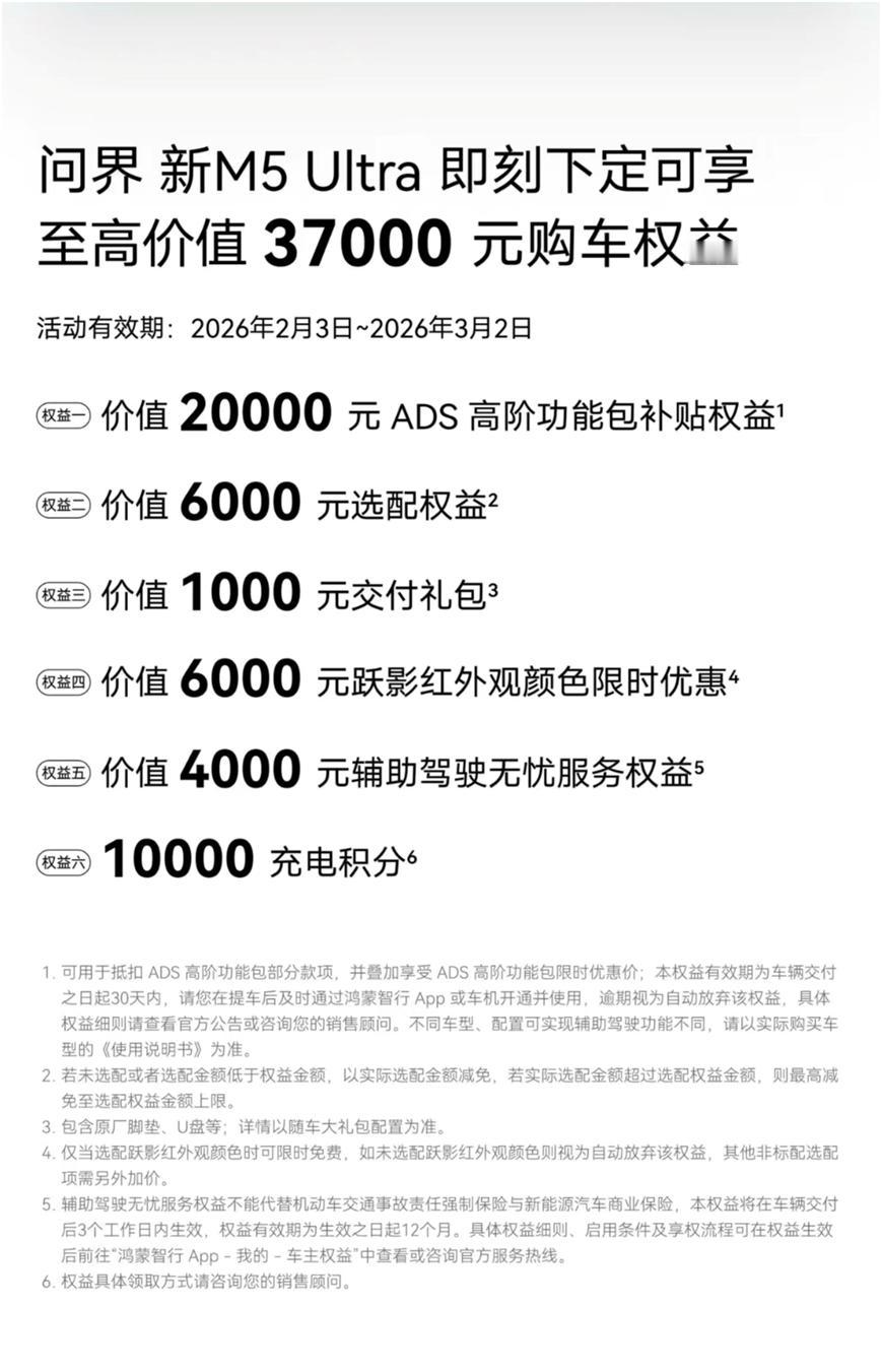 谁说电车怕跑山路?问界新M5 Ultra用扎实续航打消我所有顾虑 我老家在南方山区,冬季湿冷路滑,以前开电车回乡总是提心吊胆。今年换了问界新M5 Ultra,它的续航表现给了我巨大惊喜。增程系统智能高效,油电搭配跑了一千多公里,途中完全不用补能,电量消耗非常线性,说它“续航扎实”一点不夸张。全铝合金底盘在山路上操控灵活,过滤颠簸也很舒服。买车时候赶上官方活动,下定能享受至高37000元的购车权益包。我果断用6000元选配权益升级了舒云座椅和副驾腿托,长途乘坐更享受。算下来,相当于用很划算的价格,就买到了续航、辅助驾驶、舒适全能的六边形战士,这波入手真值。