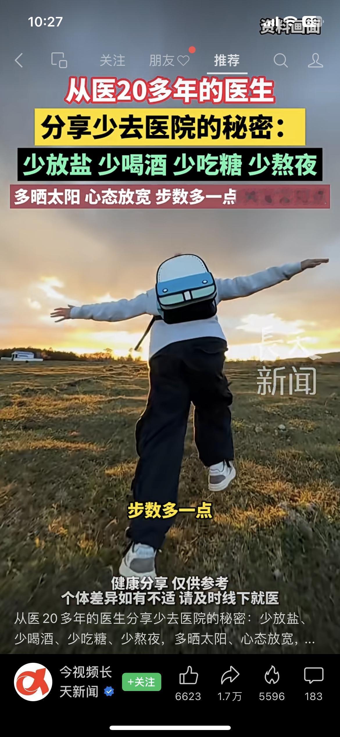 从医20年医生说:做好这8件事,少去医院 一位从医20多年的老医生分享了少去医院的秘密:少放盐、少喝酒、少吃糖、少熬夜,多晒太阳、心态放宽、步数多一点、笑容常见点。说白了,最好的医生是自己,最贵的药是生活习惯。我们总在生病后才想起养生,却忘了健康的钥匙,其实一直握在自己手里。 你能做到其中几条?站队! 健康生活 医生忠告 民生热点