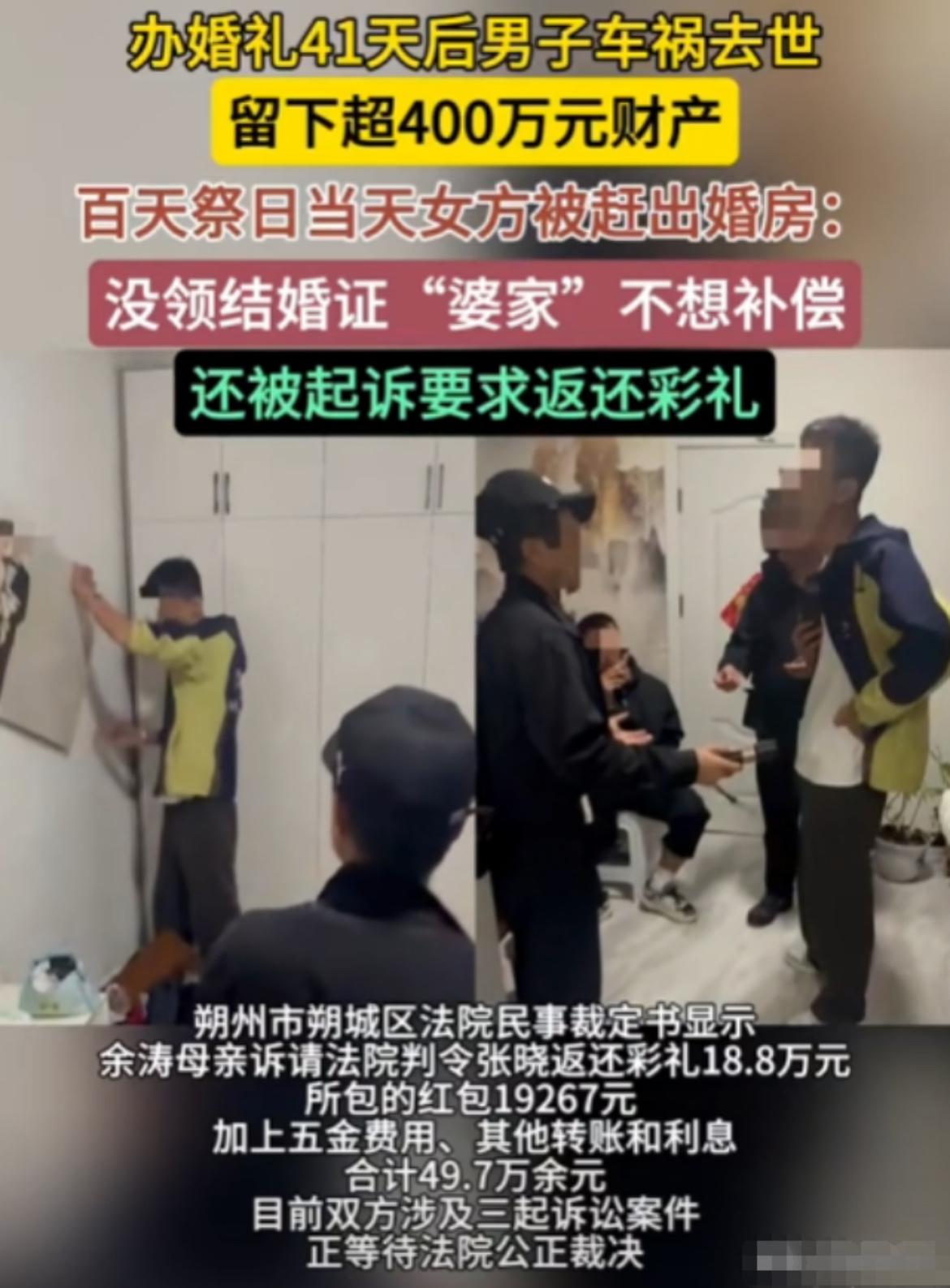 【山西朔州“未领证”婚礼变“财产大战”!千万别高估人性啊!】 嘿,兄弟姐妹们,今天给你们讲个“现实版家庭伦理剧”,剧情精彩得让人忍不住想开个爆款专栏——山西朔州那边,发生了一出“未领证的婚礼变财产大战”的奇葩事儿。你说这人性啊,真是比电视剧还精彩! 话说,有个31岁的姑娘和32岁的男孩,偷偷摸摸办了场婚礼,没领结婚证,也没啥正式手续,就算是“地下婚姻”吧。俩人感情还挺深,婚礼当天就算“夫妻”了,结果没想到,这段“未领证的婚姻”竟然成了后续一系列家庭闹剧的导火索。 可惜天有不测风云,41天后,这男的在车祸中走了,留下了一个遗产——400万!姑娘心疼丈夫,怀着“死者为大”的心情,端着灵柩去祭拜,抱着骨灰盒,打砂锅,打得那叫一个热火朝天。没想到,这一幕被婆婆看在眼里,心里暗暗不爽:你们这“未领证”的关系,能算我孙媳妇吗?于是,婆婆趁机把遗产全拿走了。 更离谱的是,男的百天祭日那天,婆婆派了四个壮汉,把姑娘赶出了婚房。姑娘一脸懵:我也算你孙媳妇啊,怎么就被赶出门了?她一怒之下,要求婆婆赔偿点啥,婆婆还答应了:30万!结果呢,没过几天,婆婆又反悔了,直接把姑娘告上了法院,要求她返还49.7万的彩礼。 你以为事情就这样结束了?当然不!姑娘一看不对劲,反诉婆婆:既然你们这么欺负我,我也要分割点财产。于是,她以“妻子”的身份,向法院请求分割一笔200万的财产。 这事儿告诉我们啥?别高估人性,特别是在利益面前,亲情、爱情都能变成“争夺战”。婚姻这事,真是“未领证不代表没责任”,更别说“未领证就能随便玩”——人性复杂,千万别被表面迷了眼。 爱情和婚姻,除了甜蜜,还得考虑“人性”这把双刃剑。否则,等你“未领证”的爱情变成“财产大战”,可就真是“笑不出来”的现实剧了。 ——这就是山西朔州的“家庭伦理新剧”,看完你是不是也觉得,千万别高估人性啊! 婚姻伦理大讨论