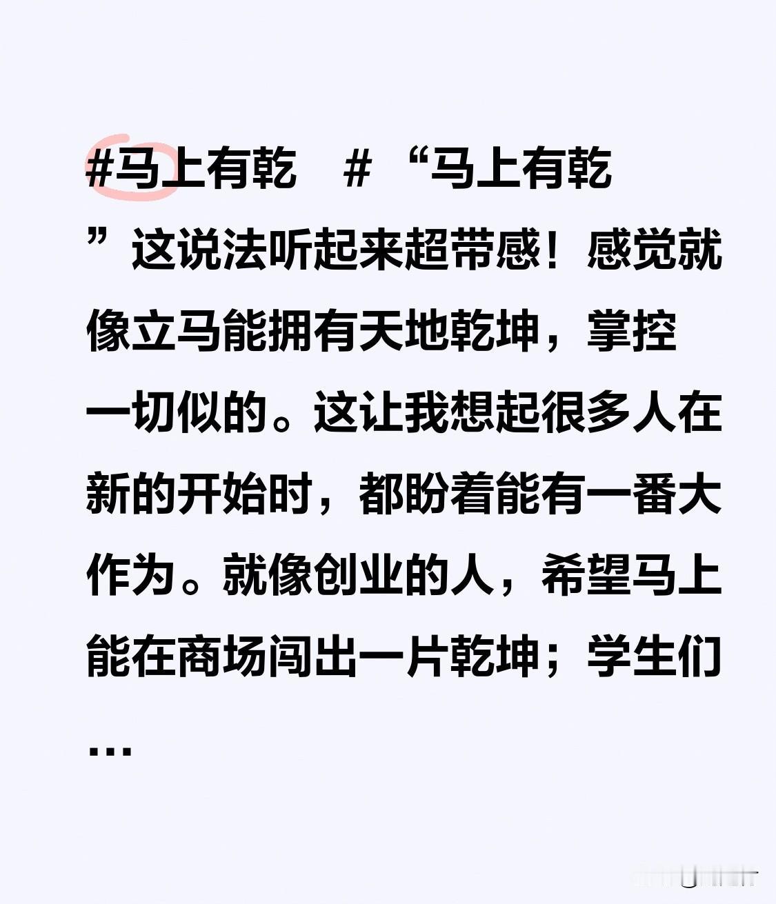 “马上有乾崑”,这说法超带感!仿佛瞬间能拥有天地乾坤,掌控一切。这让我想到,很多人在新起点都盼着有番大作为。创业之人,希望马上在商场闯出一片乾坤;学生们期待马上在学业上取得乾坤般的成就。它如神奇咒语,赋予人动力与憧憬。好似喊出这四字,好运便会降临,未来天地任我们闯荡,想想便热血沸腾! 马年马上有 马马上暴富 马上福到