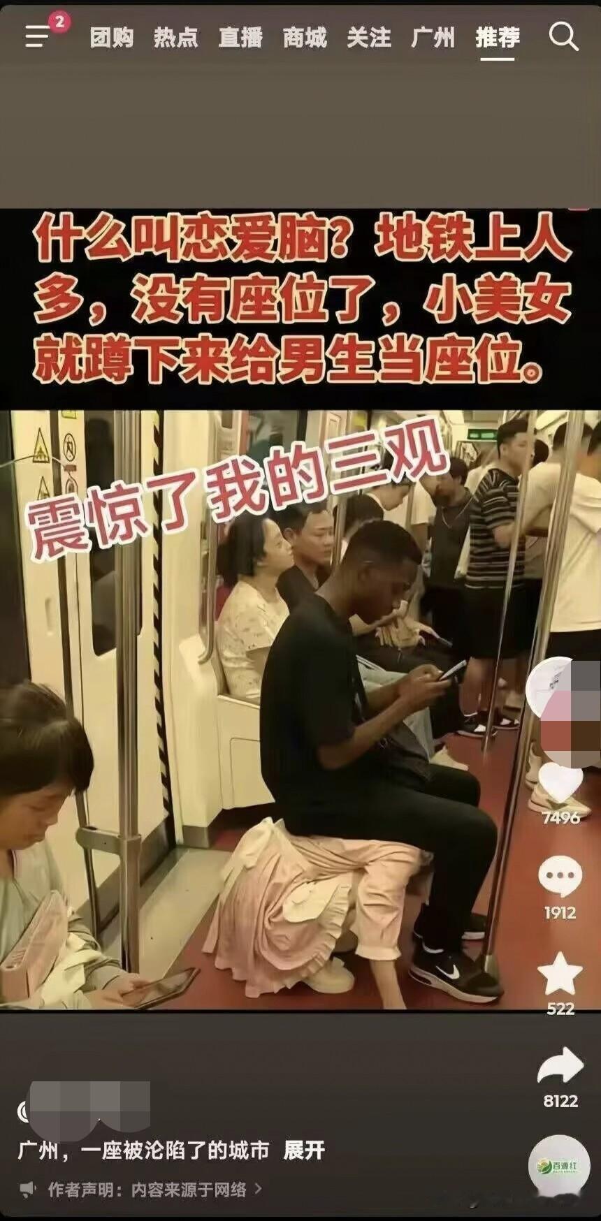 三观又碎了一次, 广州又上大分了。 看样子不像是摆拍,女拳怎么不出来说话呢?