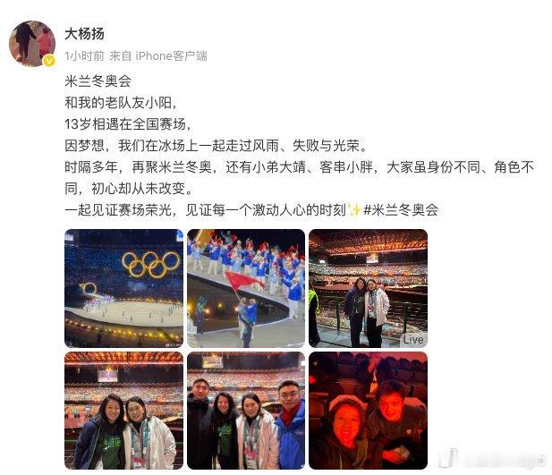 中国冬奥首金得主发文分享自己在米兰冬奥开幕式的日常,并且还分享了和 等一起的合影。每一张合照串联起夏奥与冬奥的荣光,也是中国体育的双向奔赴~米兰冬奥会