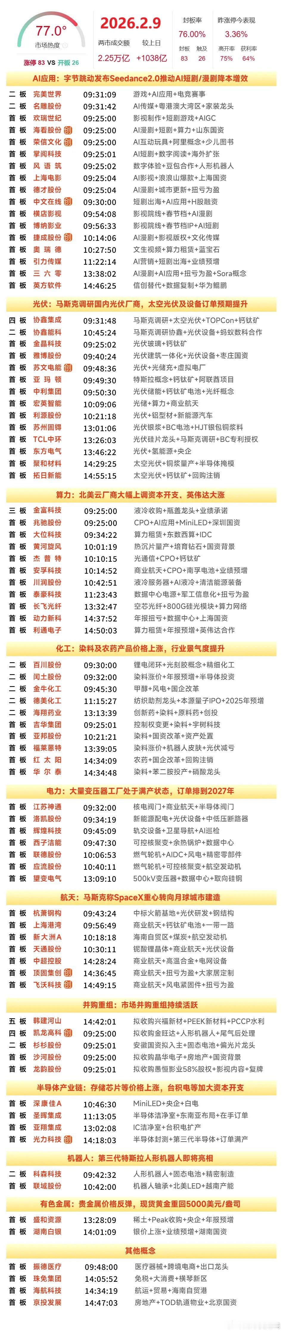 2月9日涨停榜