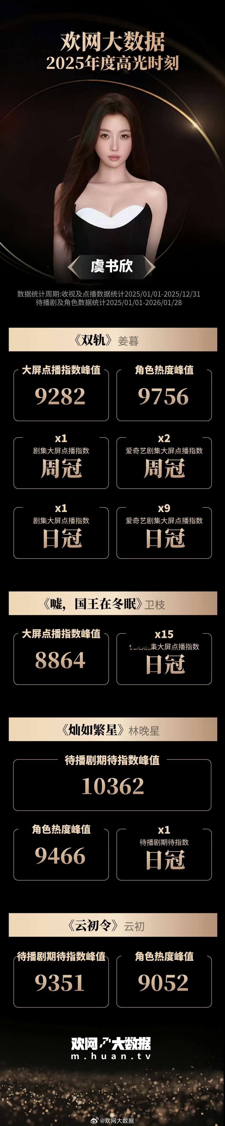 虞书欣2025年高光战绩❗️《双轨》姜暮角色热度多次拿下剧集大屏点播指数周冠/日冠 《嘘国王在冬眠》卫枝优酷剧集大屏点播指数日冠 ×15《灿如繁星》林晚星成为年度最受期待的待播角色之一《云初令》待播剧期待指数峰值9351、角色热度峰值9052