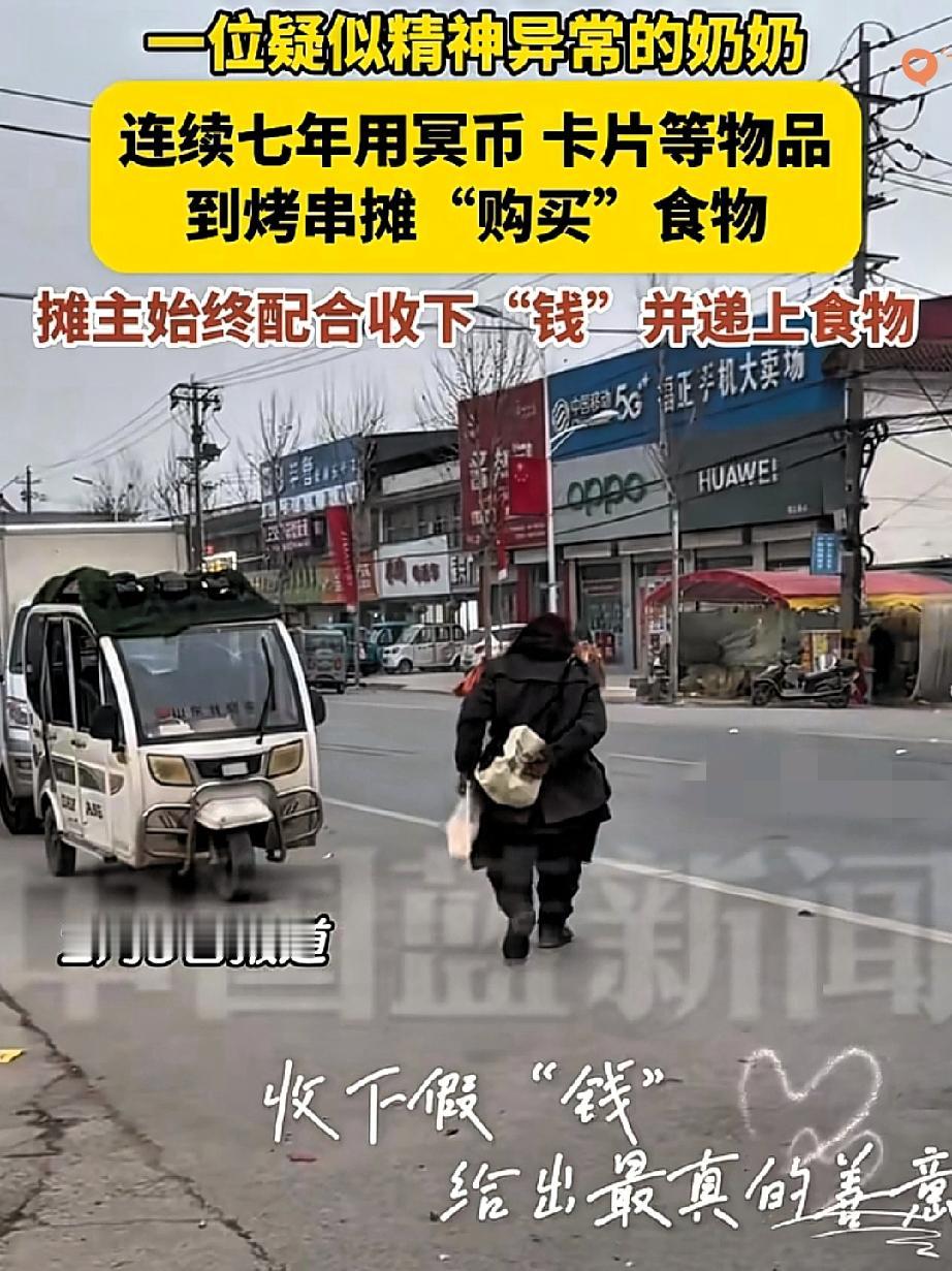 活该被老天眷顾! 山东枣庄这幕烟火气里的温柔,藏着最顶级的善良! 七年来,老奶奶揣着冥币、卡片来换烤串,摊主次次笑着收下,反手塞给她满满一袋热乎吃食,这哪里是交易,分明是把一个老人的体面,小心翼翼捧在了手心。 老奶奶认不清钱,却认死理不白拿东西,这份刻在骨子里的自尊,比真金白银更珍贵。 摊主懂她的坚持,不谈施舍不说可怜,只用一场心照不宣的“买卖”,护住了她最后的骄傲。 所谓身正不惧阴阳,不过是平凡人把善心揉进了日常,几块钱的烤串,暖的是胃,更是一颗怕被世界抛弃的心。 这世上最动人的善,从不是轰轰烈烈的付出,而是看透了你的窘迫,却选择不动声色地包容。 摆摊讨生活的人,最懂人间疾苦,也最愿意为陌生人递上一份温暖。 这样的善意,从来都不会被辜负,毕竟老天看得见每一份藏在烟火里的温柔。 你身边有没有这样不动声色的温暖瞬间?