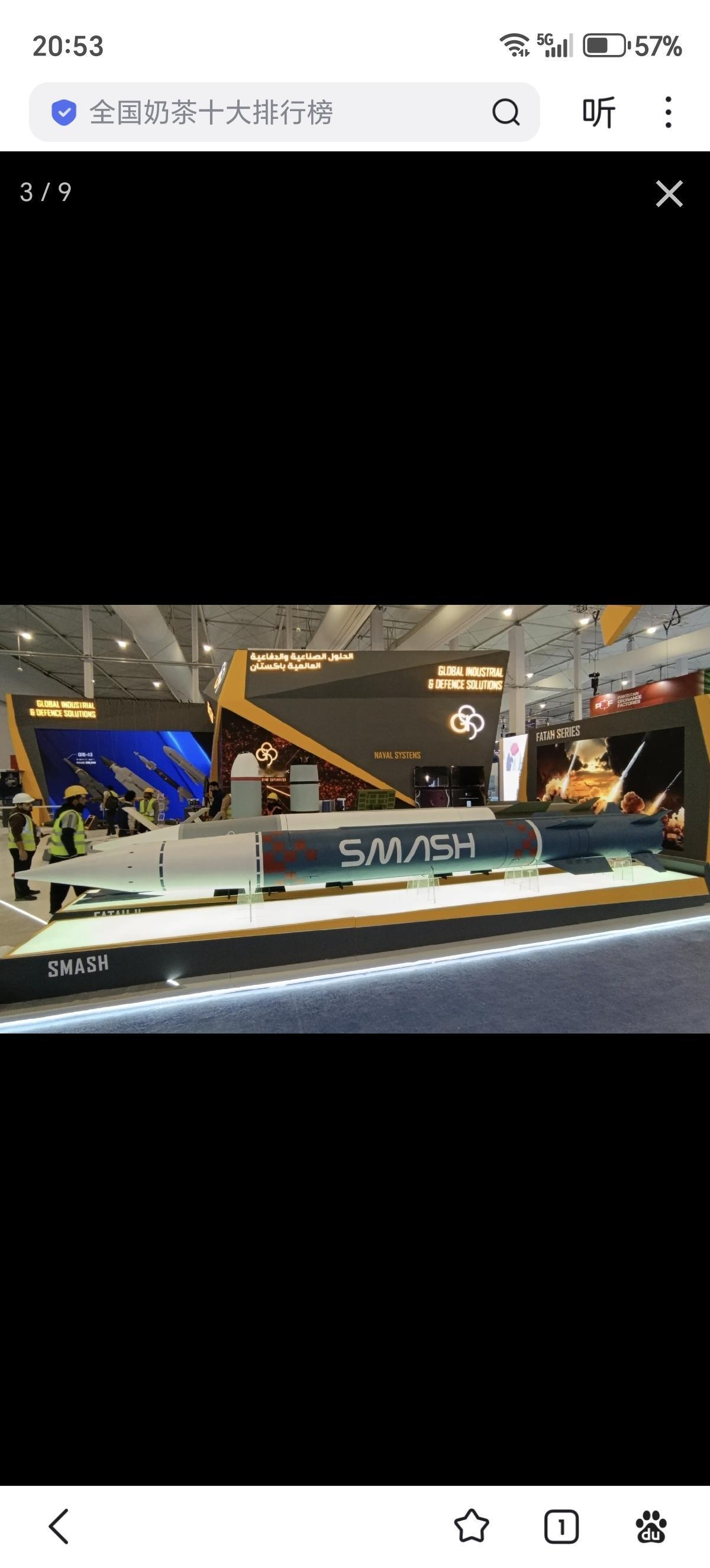 巴基斯坦国有全球工业与国防解决方案公司(GIDS)展出的 SMASH (P-282)高超音速反舰导弹,不过按照官方海报,其末端速度只有两马赫以上,其最高速度据说可以达到八马赫,具备主动雷达导引头,可从水面舰艇发射攻击舰艇和陆地目标,射程大于290公里,也有说可以达到350公里(出口版)。