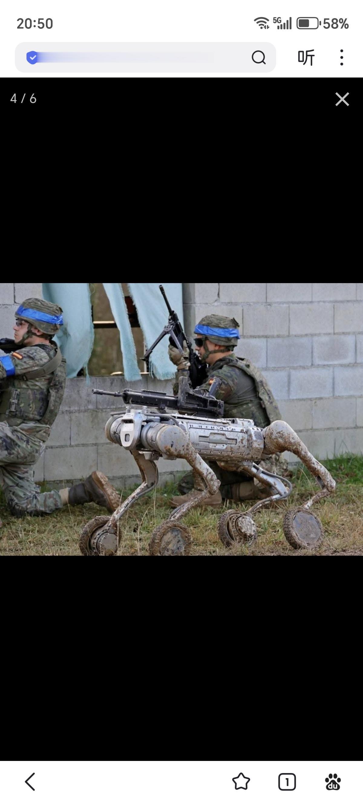 西班牙陆军正在测试的武装机器狗基于中国宇树科技Unitree B2-W机器狗加装HK G36E 突击步枪改装而来。