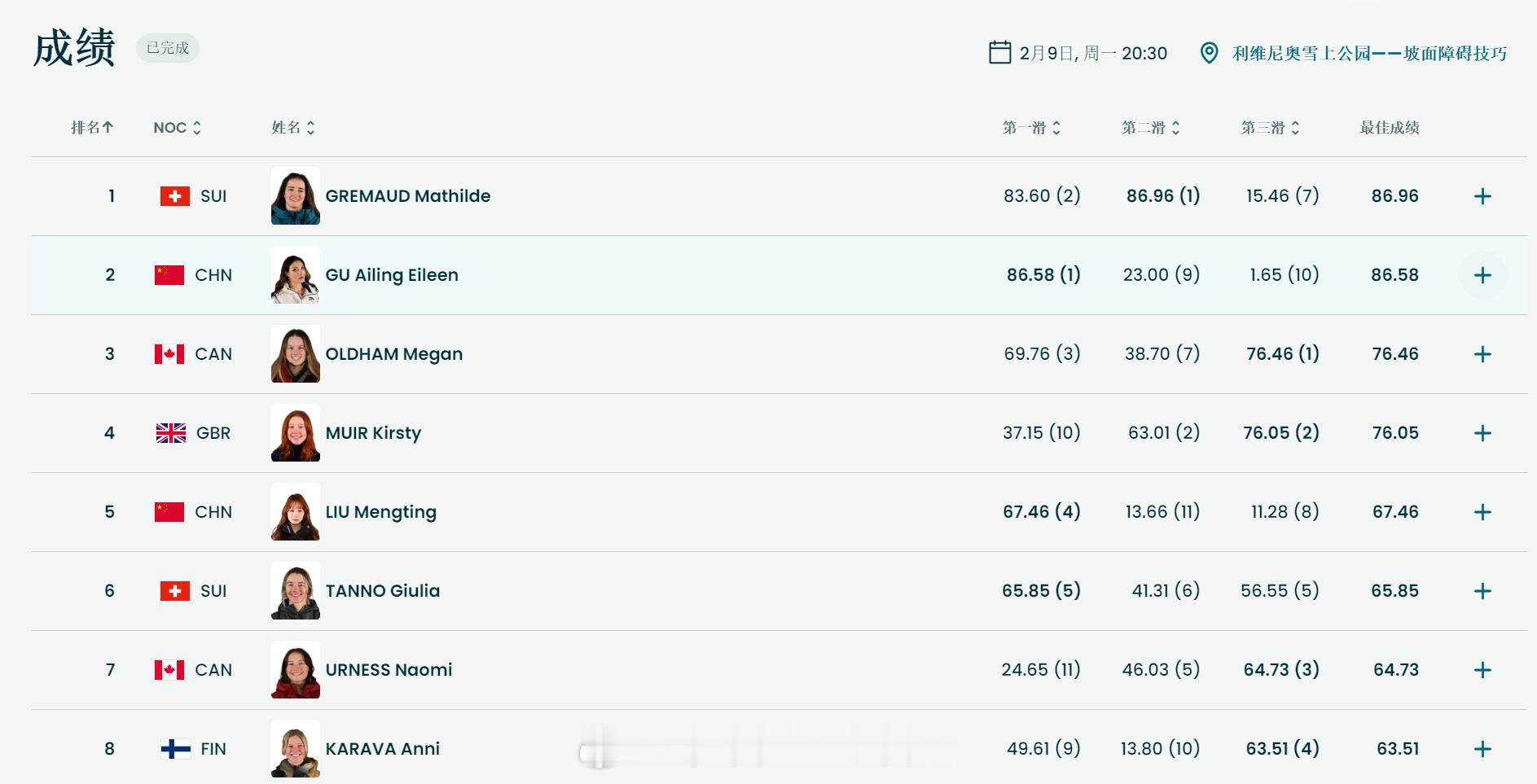 米兰冬奥女子坡面障碍技巧决赛,胜负定格在0.38分。