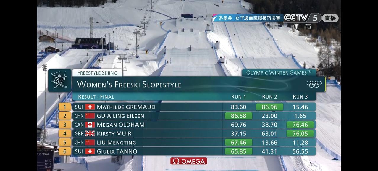 谷爱凌没拿到冠军,不过拿到亚军也已经很棒了!毕竟坡面障碍技巧不是她的主项,上届也只是银牌。这届追平上届成绩也算及格,但最后一轮一出场就失误确实遗憾,如果能完整完赛完全有机会的,就差了0.38分。希望后面的U型池和大跳台继续加油吧。尤其是U型池正常发挥应该金牌很稳。