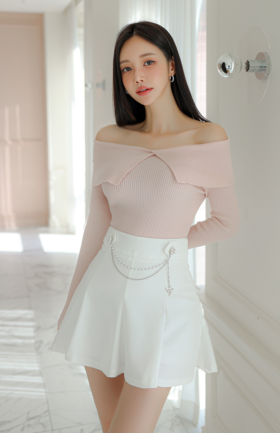 夏日清新穿搭里,黄色针织衫配白色短裙简直绝了。就像孙允珠那套造型,嫩黄色针织短袖