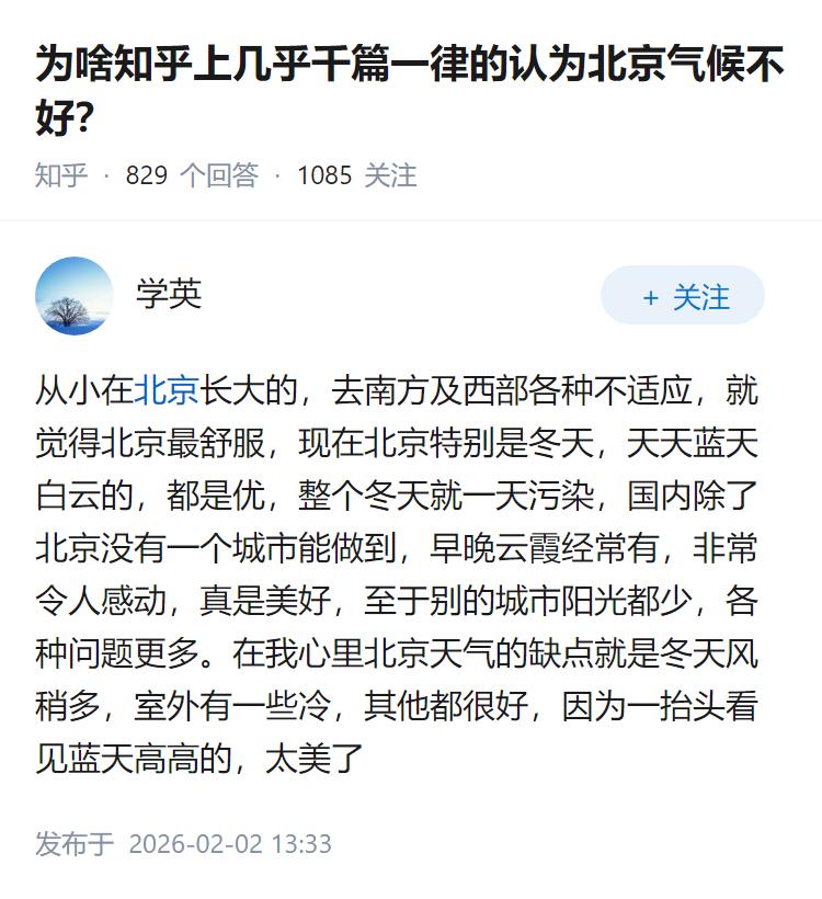 为啥知乎上几乎千篇一律的认为北京气候不好?