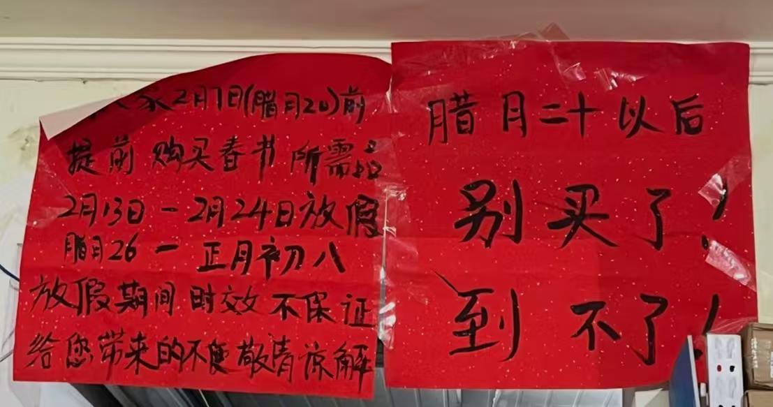 春节即将来临,正是各家各户采购年货的时候,但春节期间邮政公司即将放假,“快递停运