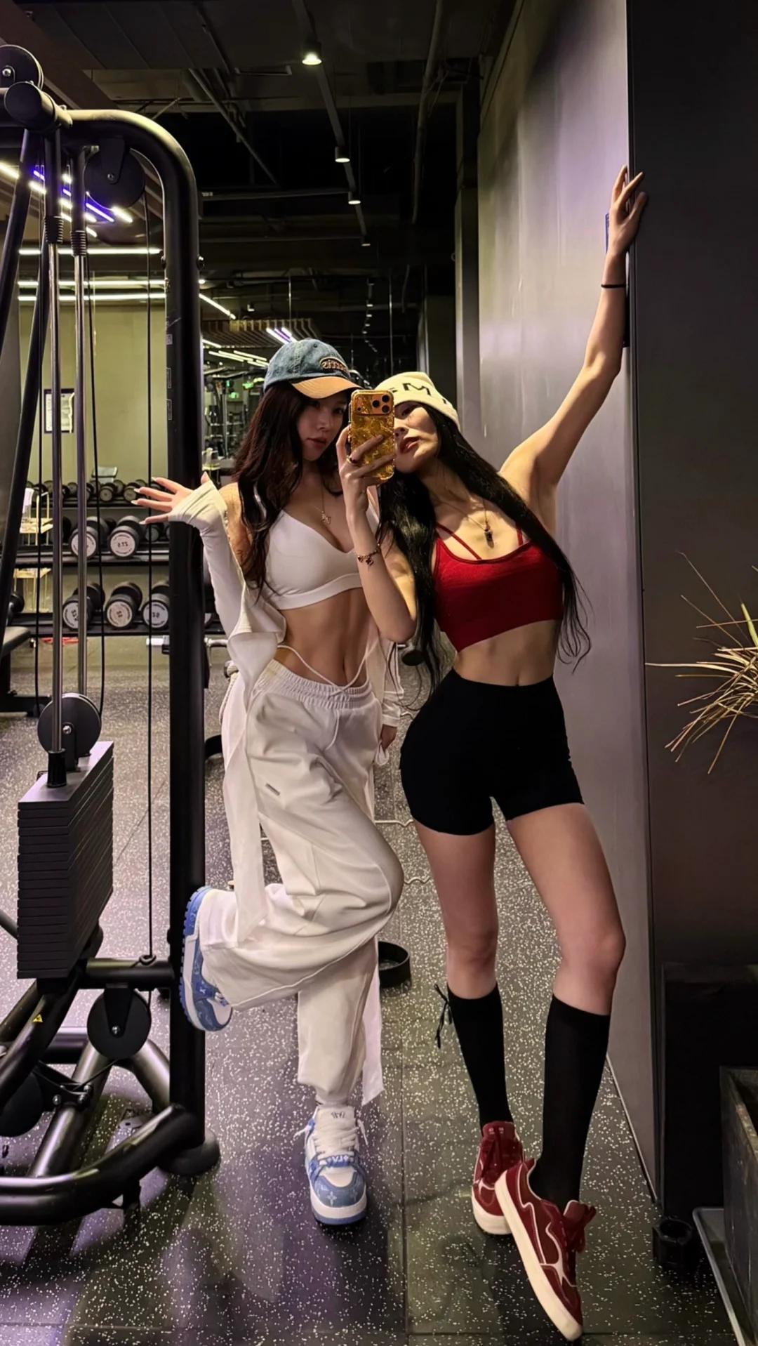 姐妹一起健身 就是爱拍照 是因为拍照心情太美了