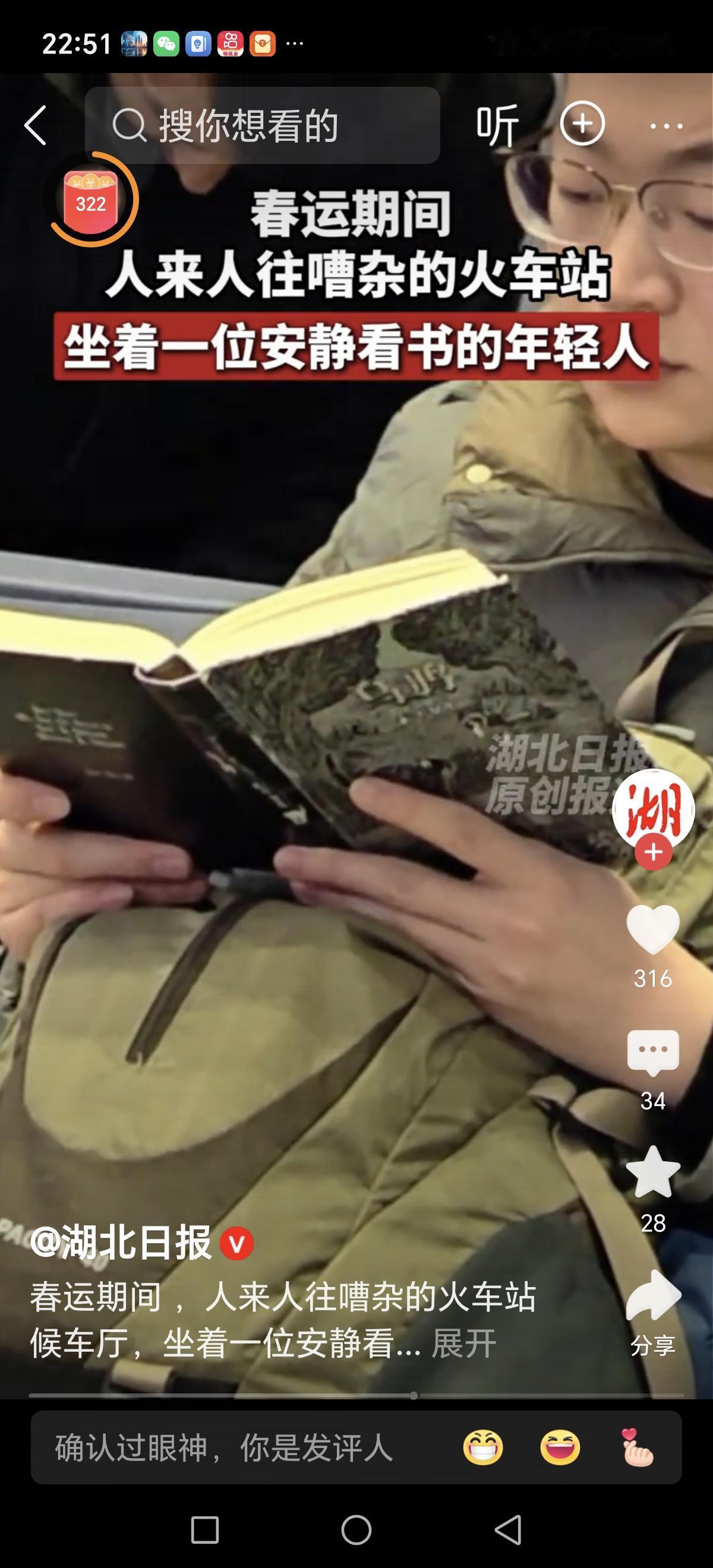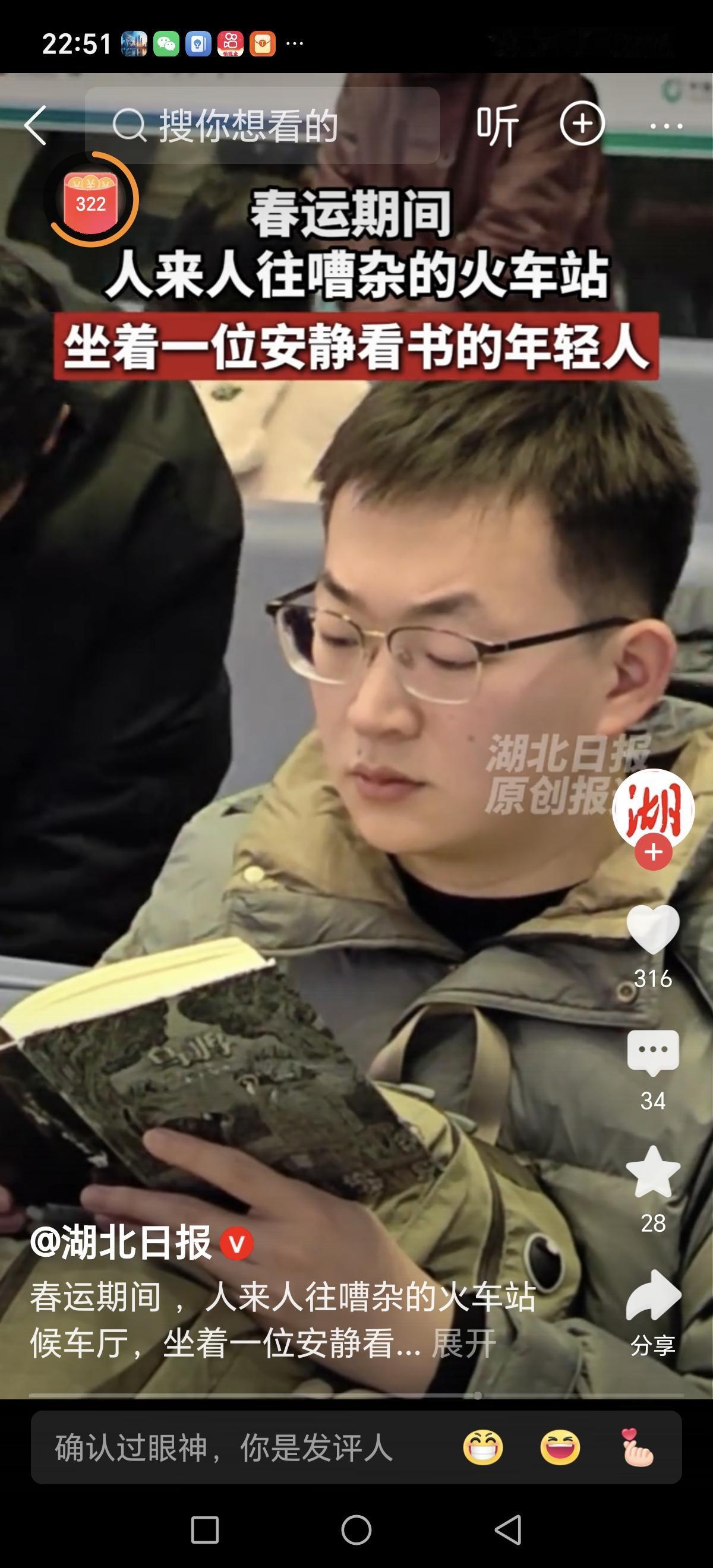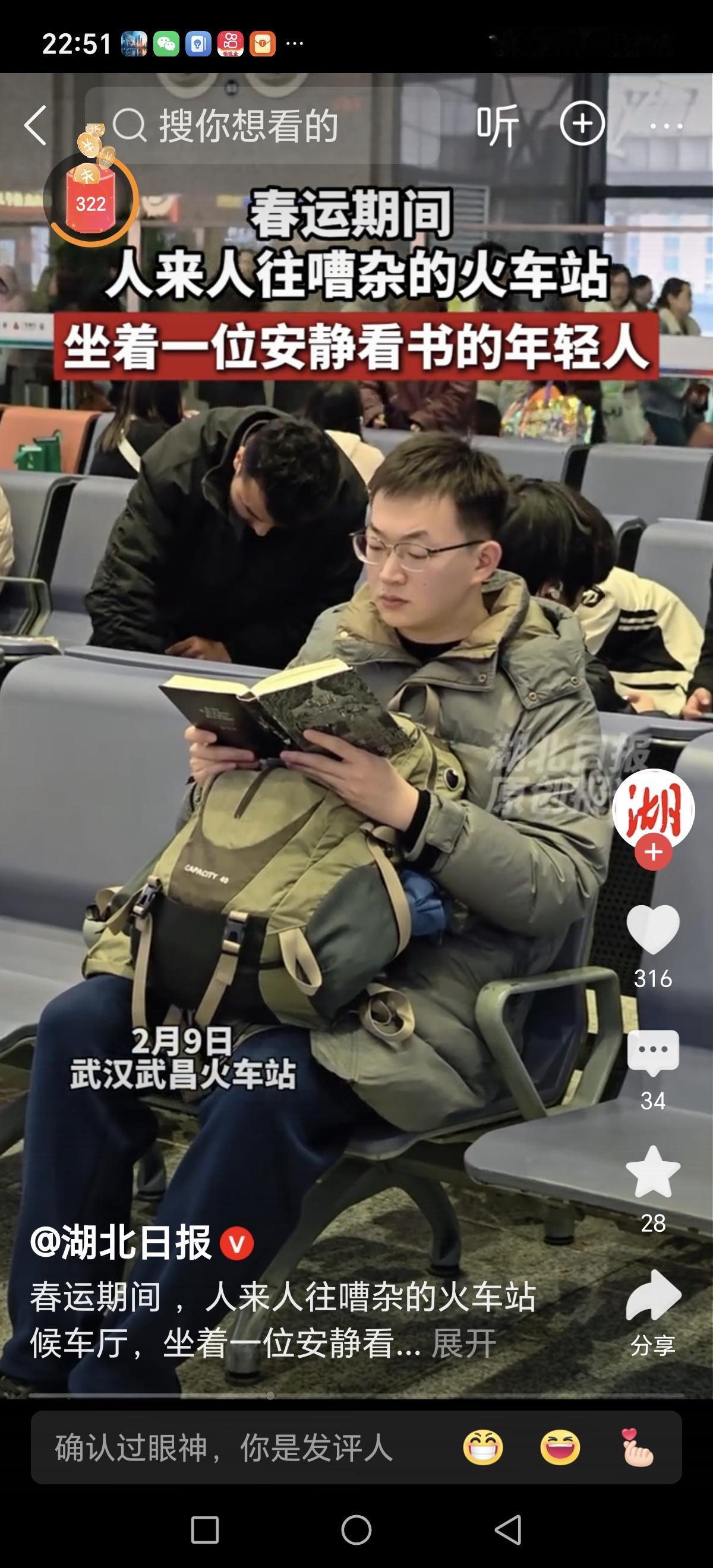 在喧嚣的火车站候车厅里,嘈杂的人群像潮水般涌动,车站广播不断播报着列车的到站信息,脚步声、谈笑声交织成一片繁忙的交响曲。然而,在这片喧闹之中,有一抹不同寻常的宁静静谧。 他,一个普通的男子,坐在候车厅的一角,手中捧着一本书,似乎与周围的喧嚣完全隔绝。那一刻,他的眼神专注而平静,仿佛周围的嘈杂都变成了背景音乐,衬托出他内心的沉稳与安然。这种画面,让人不禁驻足思考:在这个快节奏、信息爆炸的时代,是否我们也需要像他一样,找到属于自己的片刻静谧? 或许有人会觉得,他的行为很普通,甚至有些“与世隔绝”。但仔细观察,会发现,这样的静默其实是一种力量。在这个充满压力、焦虑和浮躁的社会中,静静看书的人,像是一股清流,提醒我们:内心的平静,才能让我们在纷繁复杂的世界中找到方向。 更令人动容的是,这位男子的专注不仅仅是对一本书的阅读,更像是一场和自己心灵的对话。在这个碎片化信息充斥的时代,很多人都迷失在快节奏的生活中,忘记了静下心来,倾听自己内心的声音。而他,用行动告诉我们:即使身处嘈杂,也可以拥有属于自己的片刻安宁。 这让我想到,或许我们每个人都应该学会在生活的喧嚣中,找到那份属于自己的静谧。无论是一本书、一首音乐,还是一段独处的时间,都能帮我们重新整理思绪,找到前行的力量。就像他在火车站静静看书的背影,散发出一种淡然与坚韧,让人心生敬意。 也许,正是这种简单但深刻的画面,折射出每个人心中那份渴望:在纷繁的世界中,拥有一片属于自己的净土。在这个瞬息万变的时代,学会静下来,活在当下,才能真正体会到生活的美好与意义。 所以,下次当你看到身边有人静静阅读时,也许可以多一份理解与尊重。或许,那不仅仅是一本书,更是一种生活的态度:在喧嚣中保持内心的平衡,在浮躁中坚守自我。让我们都成为那样的人,无论环境多嘈杂,心中都能保持一份宁静与清明。在喧嚣中伢持内心的平静春运高铁站