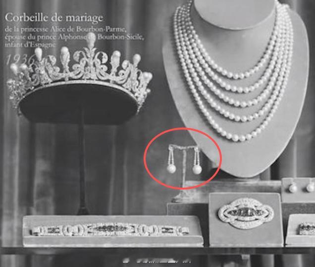珠宝 属于波旁-两西西里公主特蕾莎(胡安·卡洛斯国王表姐)的钻石耳环,是她亲妈艾丽西亚结婚礼物的一部分,由尚美设计制作。原本挂着珍珠,后改成了大钻。特蕾莎很早就继承了这对,可见公开场合佩戴仅在80年代和04年,前两年借给了同名外孙女在婚礼上使用(红宝石王冠她十来年前卖了)