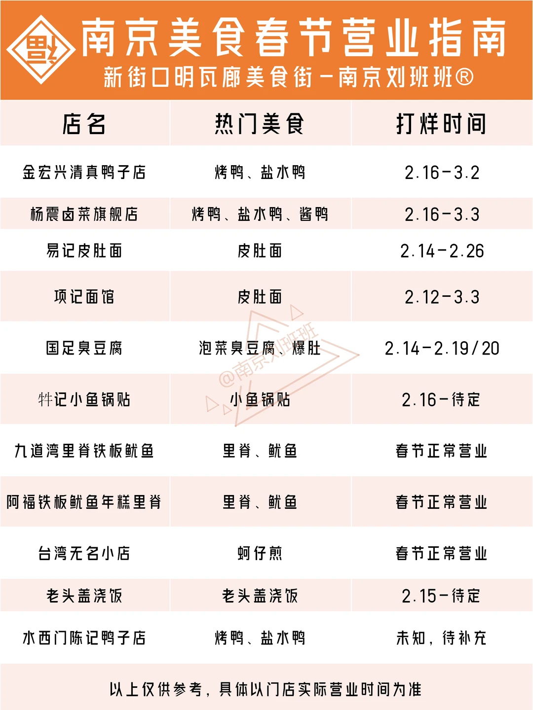 📖南京新街口明瓦廊一批美食店铺春节即将放假打烊啦~