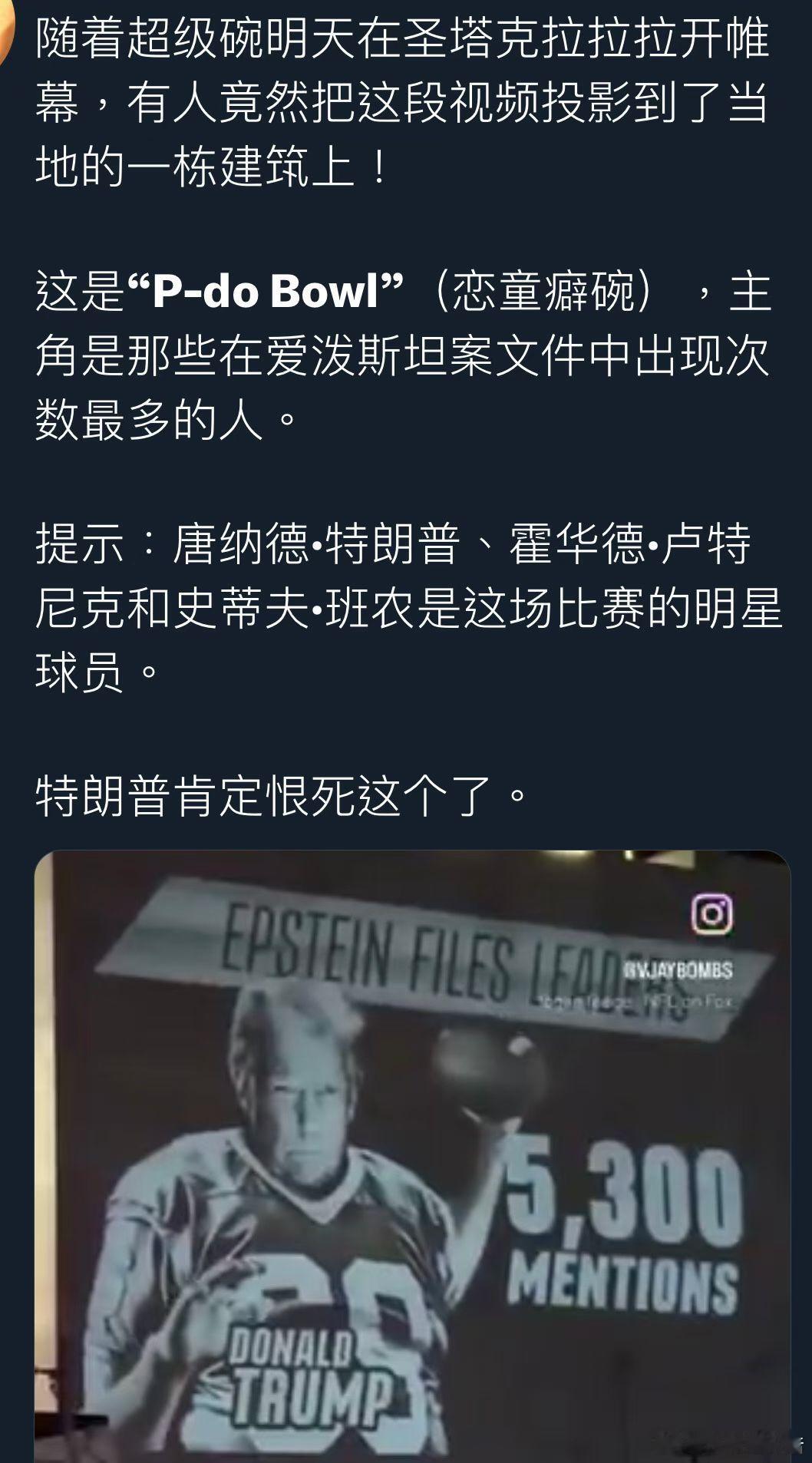 美国政坛正面临史世级的地震:杰弗里.爱泼斯坦幸存者在今晚超级碗广告中集体发声:"我们拒绝被迫翻篇。"全美数百万观众看到她们手举童年照片,直面司法部长Pam Bondi发问:为什么仍有300万份爱泼斯坦相关文件被封存?根据2025年《爱泼斯坦文件透明法案》,真相还要等多久?正义不是口号。透明不是选择题。站出来,支持幸存者。华川粉你们怎么洗?