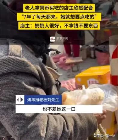 “好一个身正不惧阴阳!”山东枣庄,一个老奶奶,拿着一张冥币,来到一个烤串摊前,她把冥币递给老板,要了一个烤串,让人惊讶的是,老板居然开心地收下了冥币,还把烤串给了老奶奶,有人吓得赶紧跟老板说:“赶紧把这钱丢掉,大过年的不吉利!”老板却说:“我不惧阴阳,不怕这些!” 你就站在那儿看,老奶奶递“钱”的手是颤的,眼神里却有一种孩子般的认真和执拗。那烤串摊的刘老板呢,接过来看也不看,顺手就塞进围裙兜里,动作熟练得就像收下一张普通的十块钱。 然后转身从烤得滋滋冒油、香气扑鼻的架子上,挑一串最大的、肉最多的,仔细吹吹,递到老人手里。这一套流程,行云流水,没有半分迟疑。 为啥?因为这样的“交易”,在这条飘着烟火气的小吃街上,已经默默进行了两千多个日日夜夜。 老奶奶今年七十多了,精神头不如从前,记性也有些糊涂。她有个挺孝顺的儿子,只是今年碰巧有事,没能回来陪她。 儿子给的生活费花完了,在她有些混沌的世界里,那些颜色鲜艳的卡片、小孩子玩的玩具币,甚至我们忌讳的冥币,就都成了可以换来食物的“钱”。 她有个固执的原则:必须“付钱”,不“买”不食。那份递出“钱”时的腰板挺直,是她给自己留的、最后的体面。 刘老板和整条街的摊主们,早就摸透了这个规矩。卖铁板烧的大姐会多给她卷个蛋,卖鸡腿的大姨会把最嫩的那只夹给她。他们收下的,哪里是“冥币”,收下的是老人家那份不肯白受施舍的尊严。 有不明白的旁人嘀咕,说这钱晦气。刘老板听了只是笑笑,说出那句让全网点赞的话:“身正不惧阴阳。” 在他眼里,这就是件小事,“我们本身就是做吃的,也不差他这一口”。 这话朴实,却像一颗实心的秤砣,稳稳地压住了所有浮华的议论。 网友们说得更妙:“老奶奶给的是‘天地银行’,老板卖的是‘天地良心’。” 你发现没有,这事儿听起来是个社会新闻,可它内核里烧着的,是眼下最热乎的一把火。情绪价值。现在人买东西,早就不光图个“有没有”,更图个“心里暖不暖”“感觉好不好”。 而刘老板他们这烤串摊、铁板烧,提供的何止是食物?那是一份对孤独老人的无声陪伴,是一个社区守望相助的温暖场景,是让所有目击者心里都软一下、暖一下的“情绪体验”。这体验,千金难买。 当然,暖流奔涌的时候,咱也得看看水下的石头。老人需要拿着“冥币”才能换到一日餐食,这本身也照出一些影子:老龄化社会来了,多少家庭在“搬砖”和“尽孝”之间撕扯。 儿子孝顺却难常在,老人认知障碍却缺乏更系统的社会支持网络。商户们的善意是兜底的网,但这网,不能只靠良心织就,也需要更坚固的社会政策丝线来加固。 这故事最美的部分,在于没有“英雄降临”的戏剧感,只有“日日如常”的坚韧。它没想感动别人,只是温暖了那条街,进而温热了屏幕前我们的心。 所以,再回头看开头那一幕,还觉得诡异吗?那张轻飘飘的冥币,在老板手里重如泰山。 因为它承载的,是一个老人风雨无阻七年的信任,是一整条街商户心照不宣七年的守护。 这世间最好的风水,从来不是避讳什么阴阳,而是人心的向阳。善良在哪儿扎根,哪儿就是春暖花开的人间。 这大概就是为什么,我们会被这样的故事打动。它让我们相信,在算法推荐和流量为王的时代,总有一些价值,无法被数据计算,却能在人心深处完成最原始的共鸣与传承。