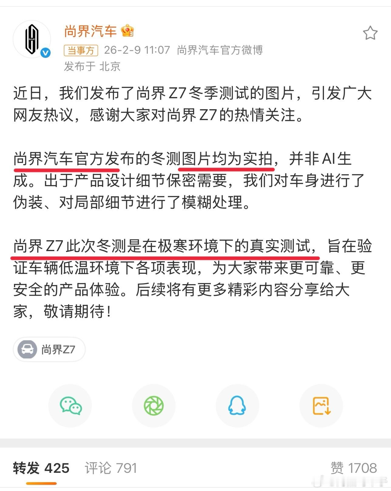 整体来说这波公关水平还是到位的,基本上可以覆盖舆论风波尚界汽车辟谣冬测图片为AI生成