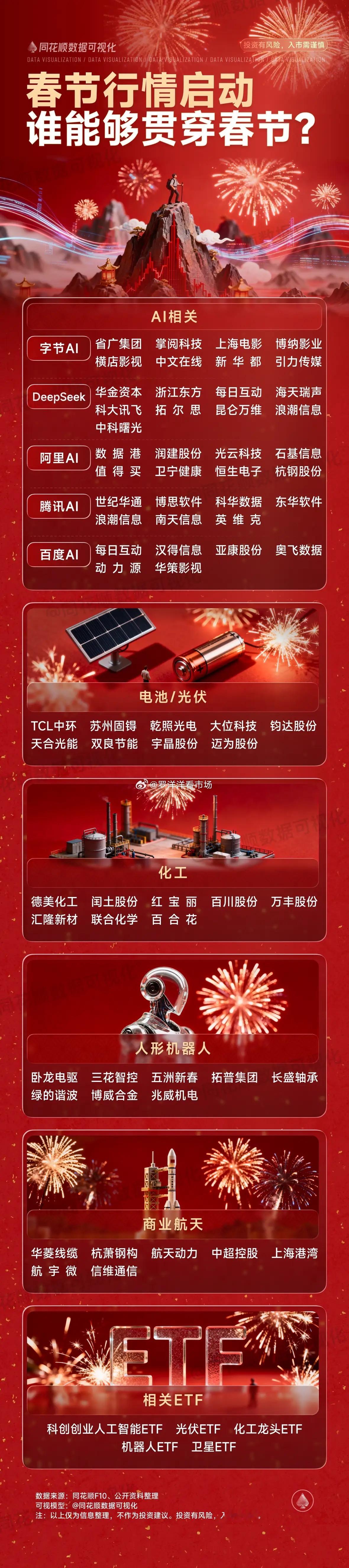 春节行情启动,哪个板块能贯穿春节?同花顺数据可视化股市行情太空光伏热门题材AI应用