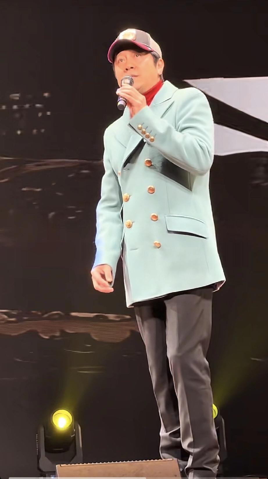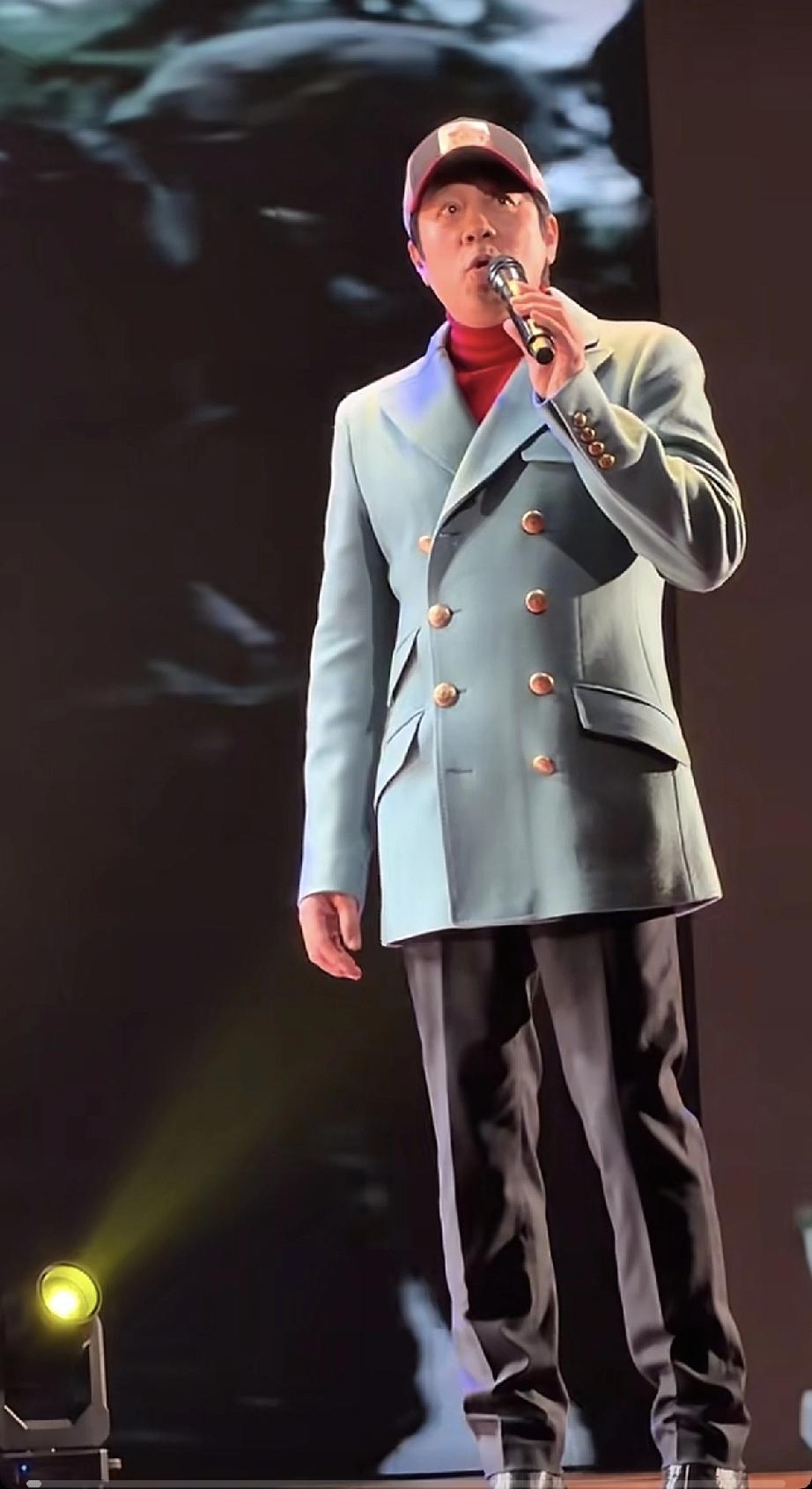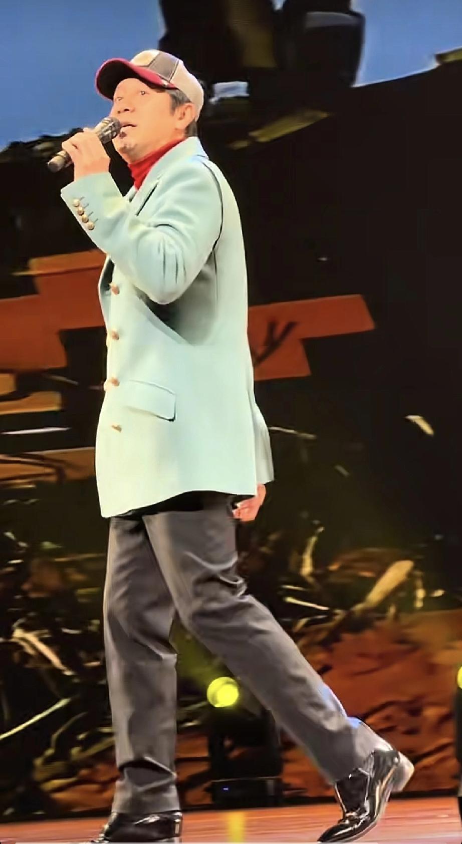 蔡国庆春节献唱,58岁发腮有白头发,胖了也老了! 近日,蔡国庆罕见露面参加一商演活动,他上台唱了经典歌曲《不能没有你》,今年58岁的他,嗓子与年轻时相比有一些沧桑了,毕竟年龄大了,不过还好他唱得比较稳,毕竟是专业歌手,也很敬业。 蔡国庆穿了一身西装,明显发胖了,原因是西装本来就宽松,扣了扣子以后仍能看出来衣服被撑得鼓起来了,说明他有大肚腩。 而且他的腿也比较粗,穿了很宽松的裤子,大腿是又粗又壮。 正是因为发胖才导致他的脸发腮,有双下巴,有了中年人的油腻感了。 蔡国庆在唱完歌后与小朋友互动,非常热情地跟他们合影。 只见蔡国庆戴着帽子,偶尔被拍到背影,能看出来有明显的白头发,他戴帽子估计就是为了遮白头发吧。 快60岁长了白头发很正常,不想染头发,那就只能戴帽子了,要不然满头白发会更老像80岁。 没想到蔡蔡国庆一下子老成这样了,记得他前几年状态还可以,他年轻时穿着军装唱歌是很阳光帅气的,用“风华正茂”形容刚刚好。 可是如今的他,到了快60岁的年龄挡不住身材发福,有了老人味了!